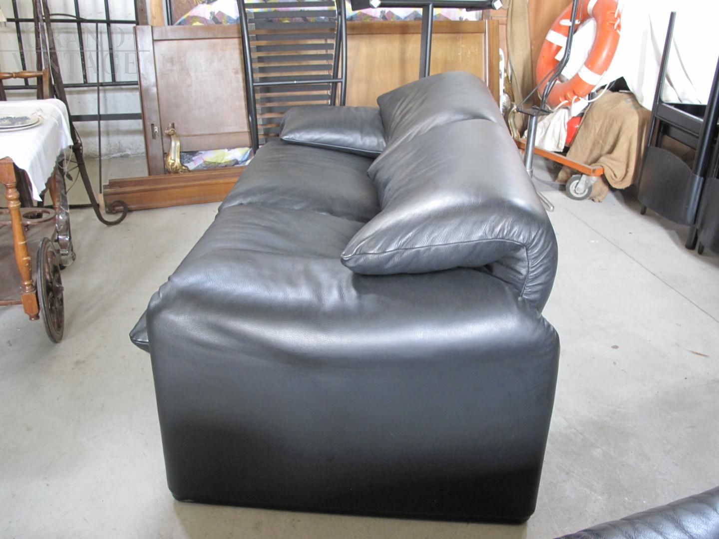 Maralunga three-seater sofa by Vico Magistretti in black leather