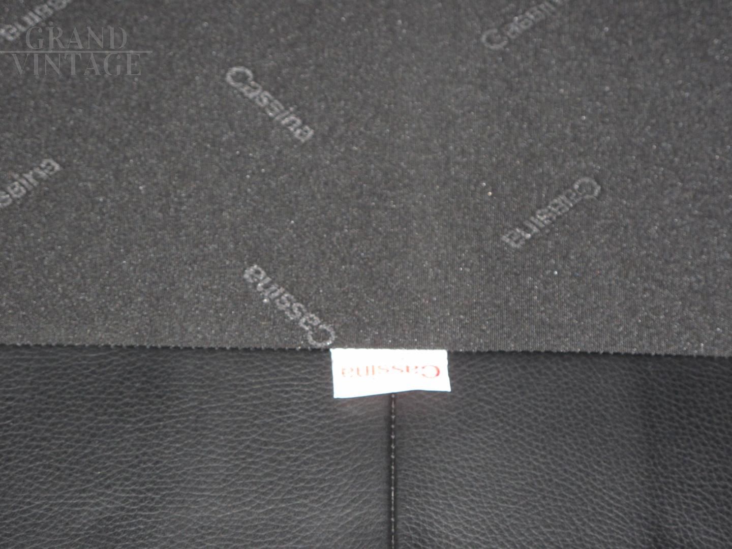 Maralunga two-seater sofa by Vico Magistretti for Cassina in black leather, with the typical movement of the headrest, features the Cassina logo under the seats.