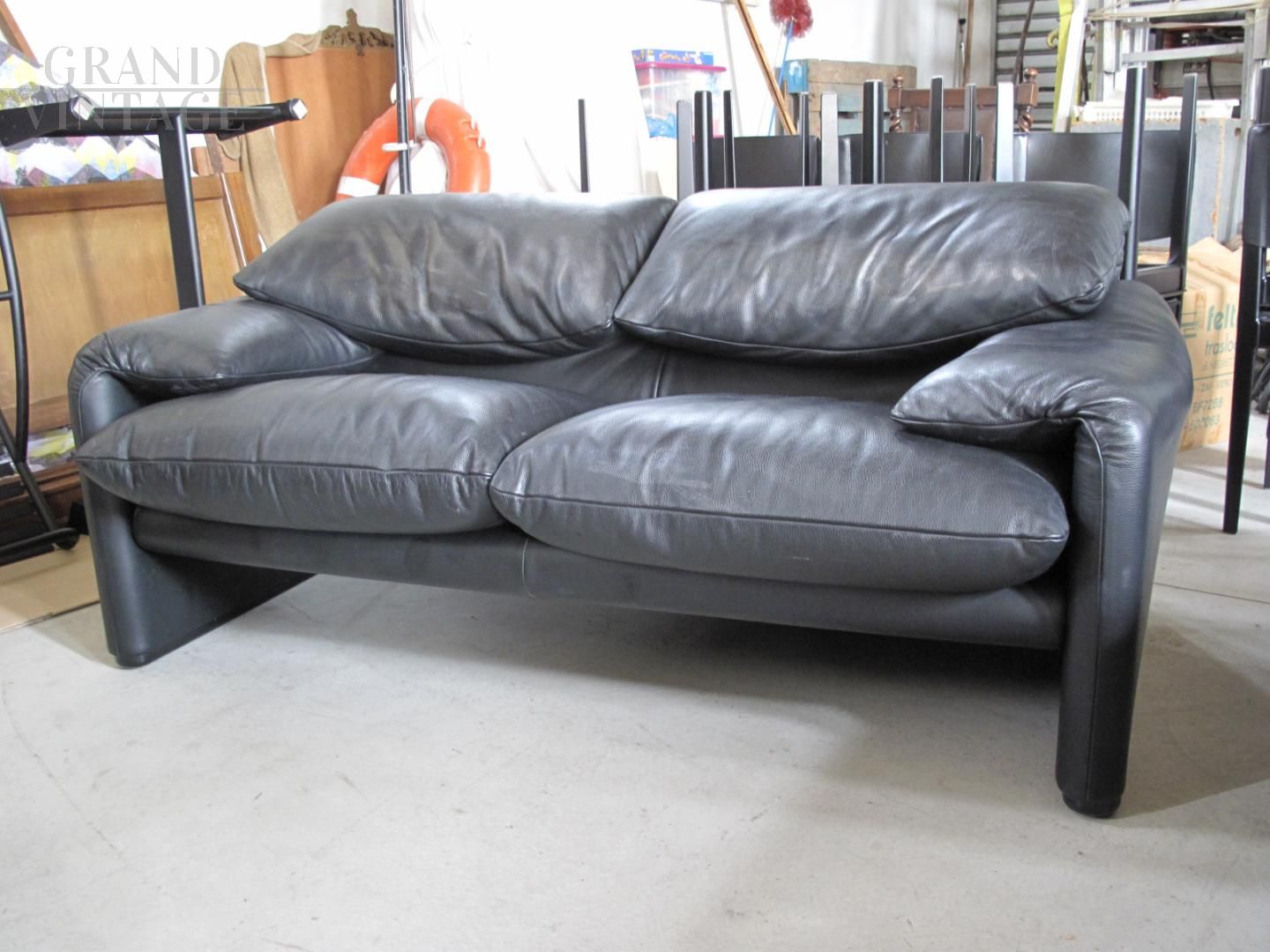Maralunga two-seater sofa by Vico Magistretti in black leather