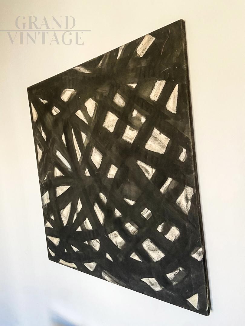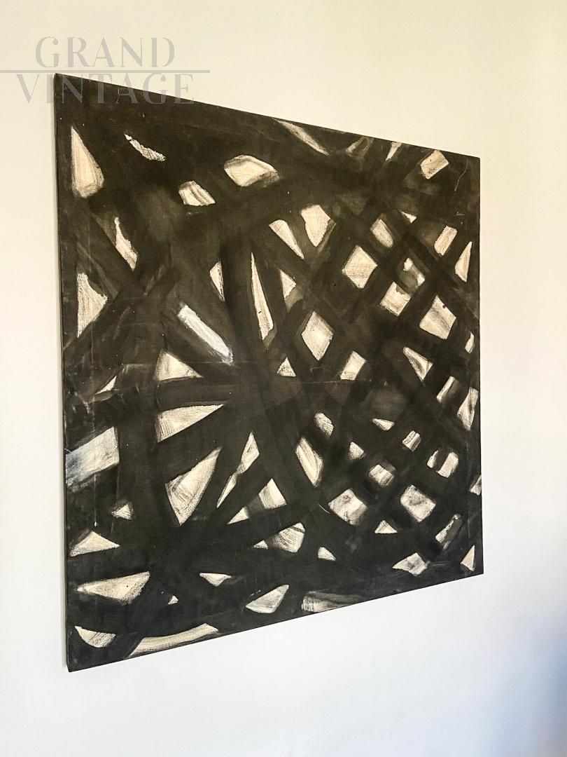 Abstract oil painting on canvas by Marco Gradi, Italy in the 1980s, in shades of black on white, perfect for enriching modern environments.