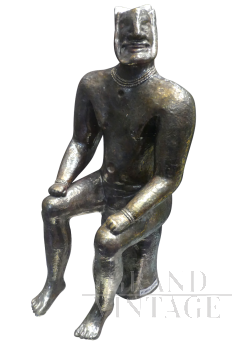 Seated Warrior - majolica sculpture by Pietro Melandri