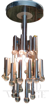 70s cascade chandelier in steel and crystals