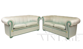 Pair of Style Arte sofas in moiré silk and marbled woodSpecial Price Special Price €900.00