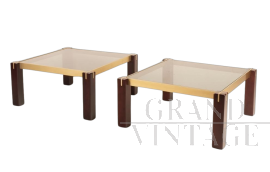 Pair of Faraone coffee tables by Renato Polidori for Skipper in wood, brass and smoked glassSpecial Price Special Price €2,400.00