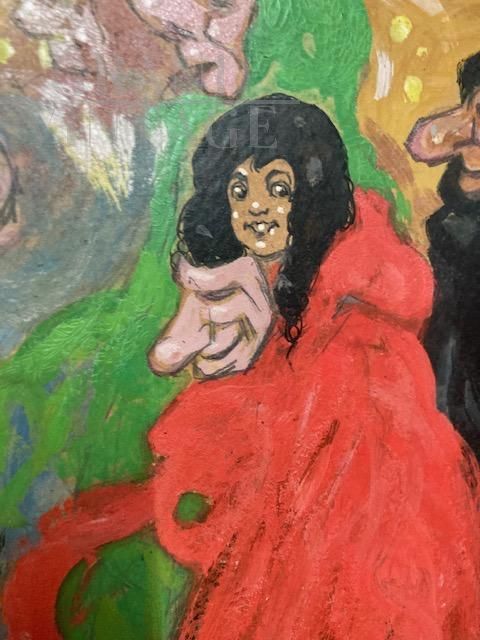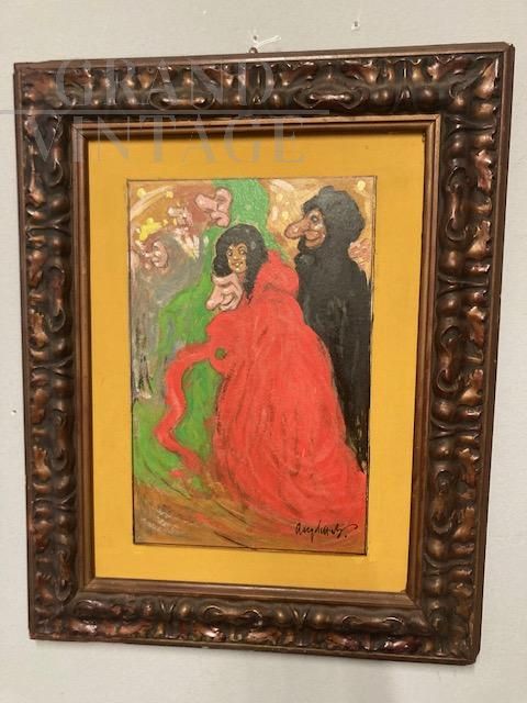 Masks - Oil painting on cardboard from the 1920s, signed