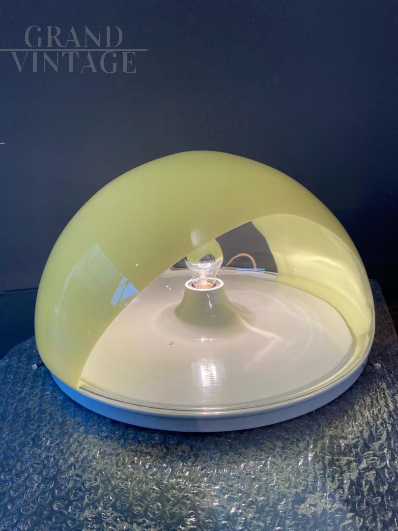 Mazzega table lamp - 1970 - characterized by a single transparent and yellow glass dome, Mazzega Edition, in excellent condition.