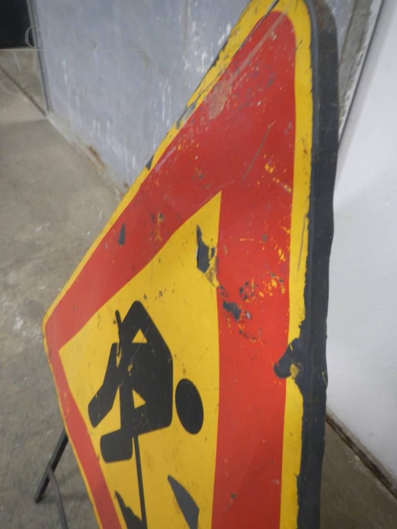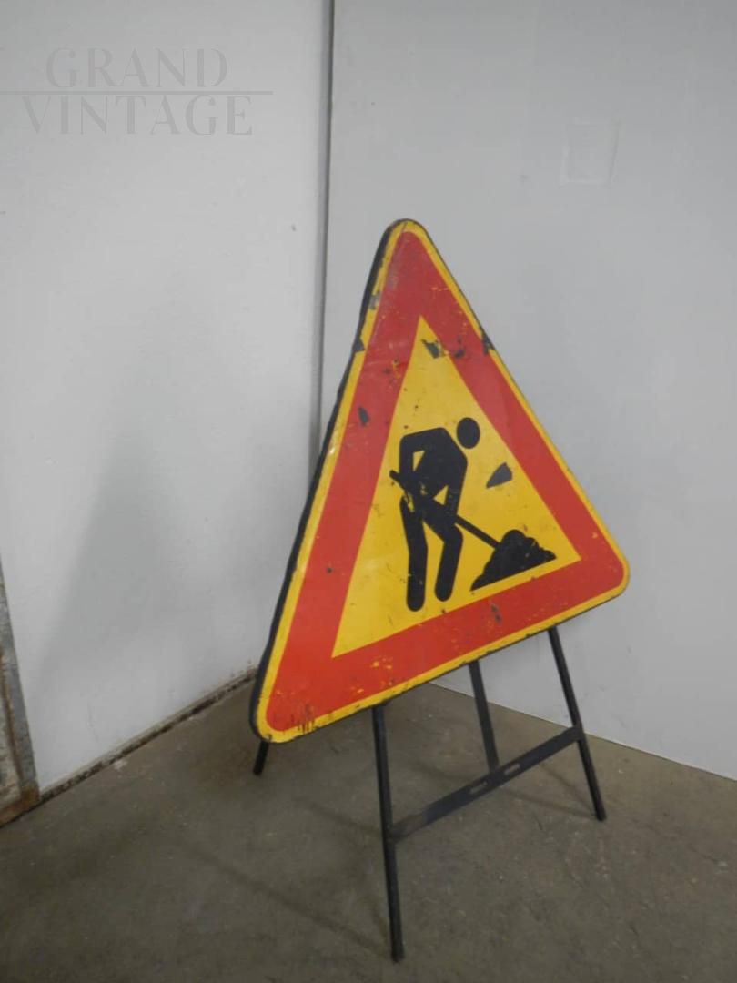 Vintage Italian Men At Work road sign, 1980s.