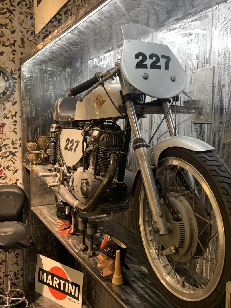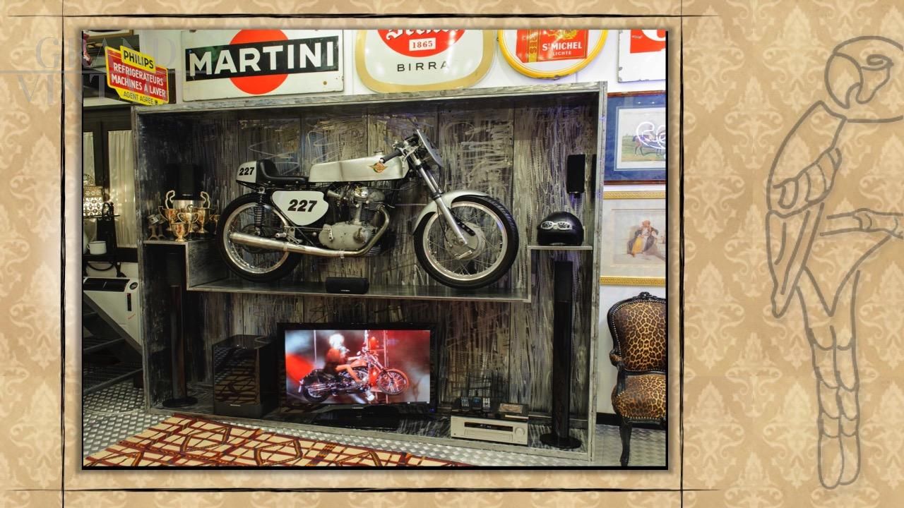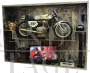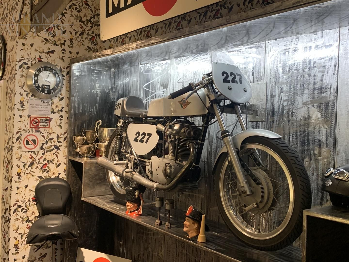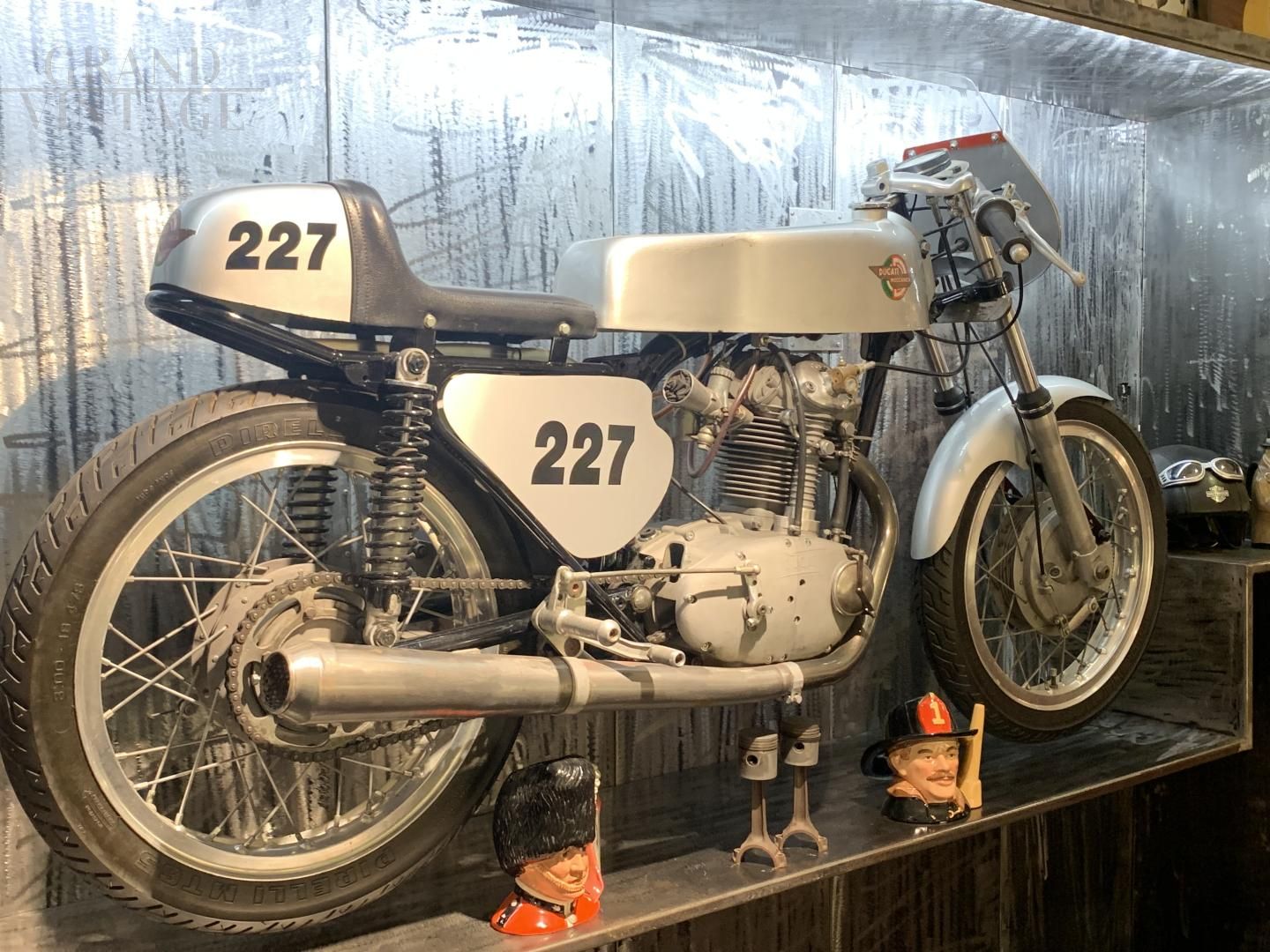 Workshop style metal bookcase with Ducati Meccanica Bologna track motorbike model 175 ss / r 250 cc. 1968 complete with documents from the Italian Historical Register F.M.I. Very impactful and CULT object.