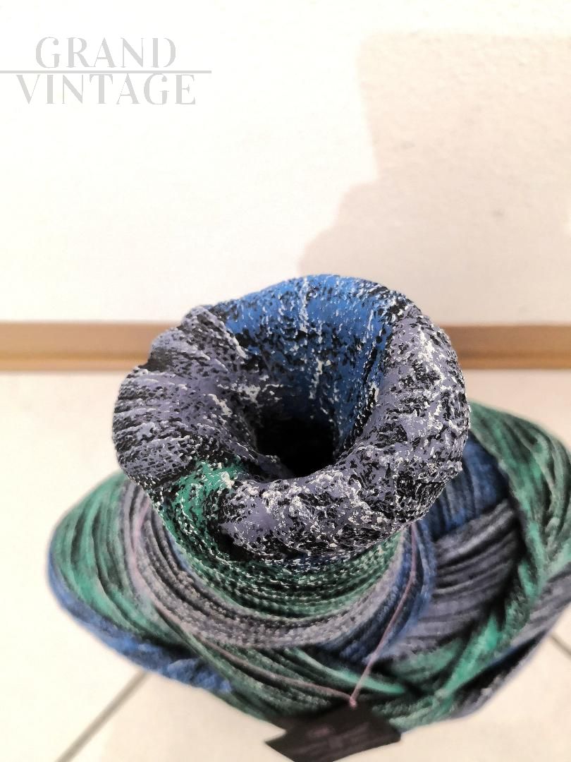 Very rare Mexican design vase handmade by Bays, Barro Arte y Diseño, in ball of wool effect ceramic in shades of green and blue.