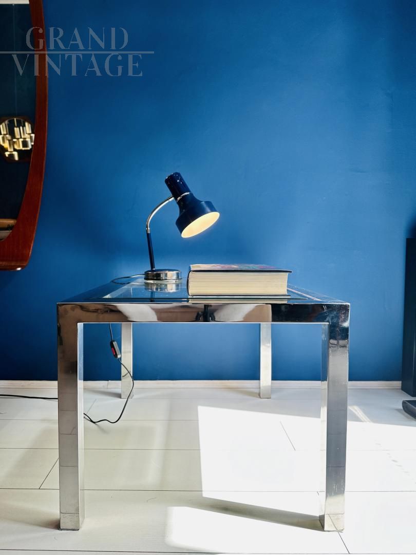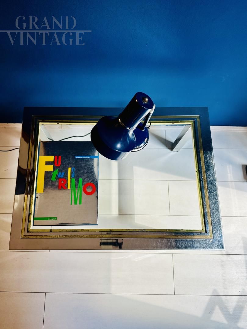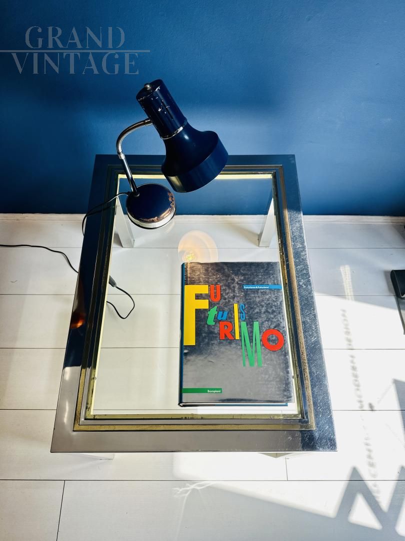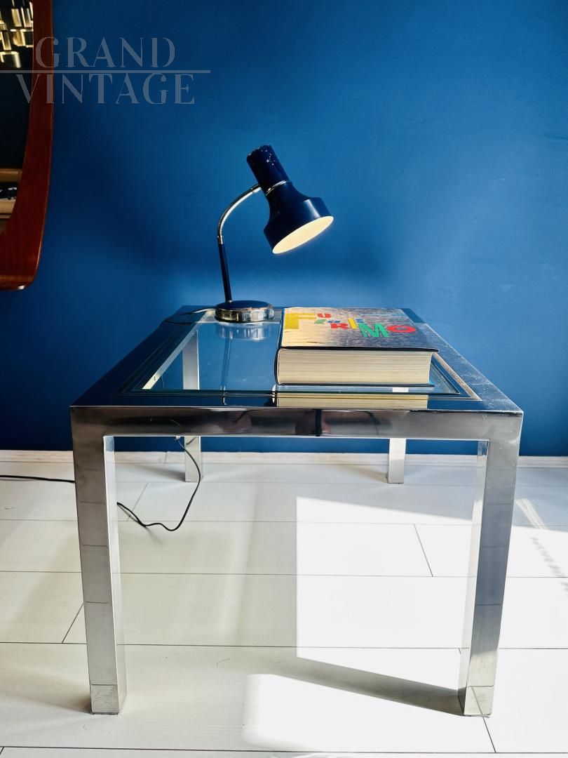 Mid-century modern coffee table in steel and glass, 1970s
