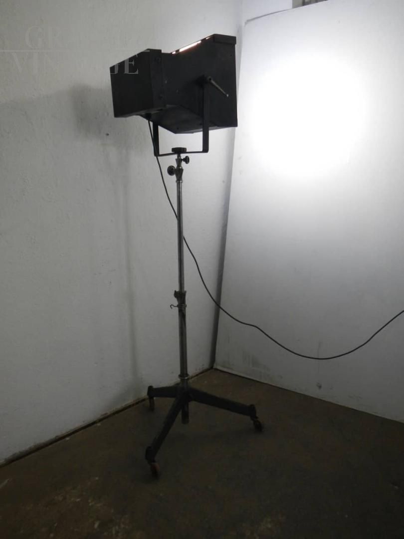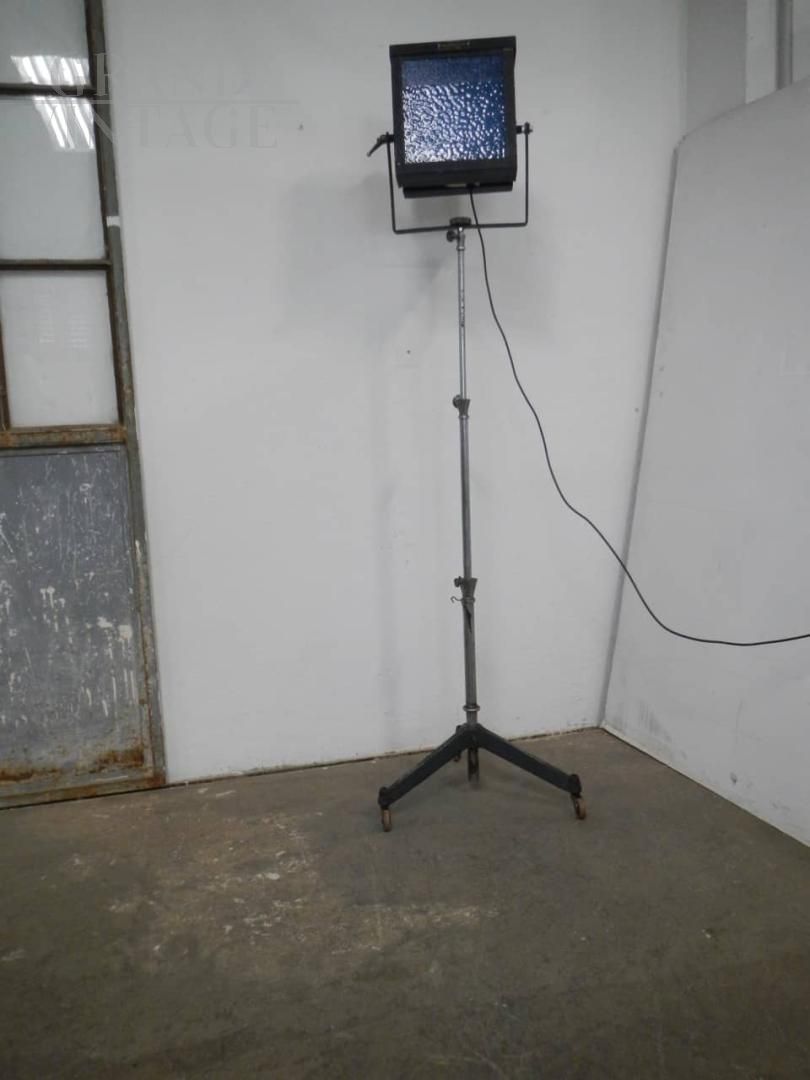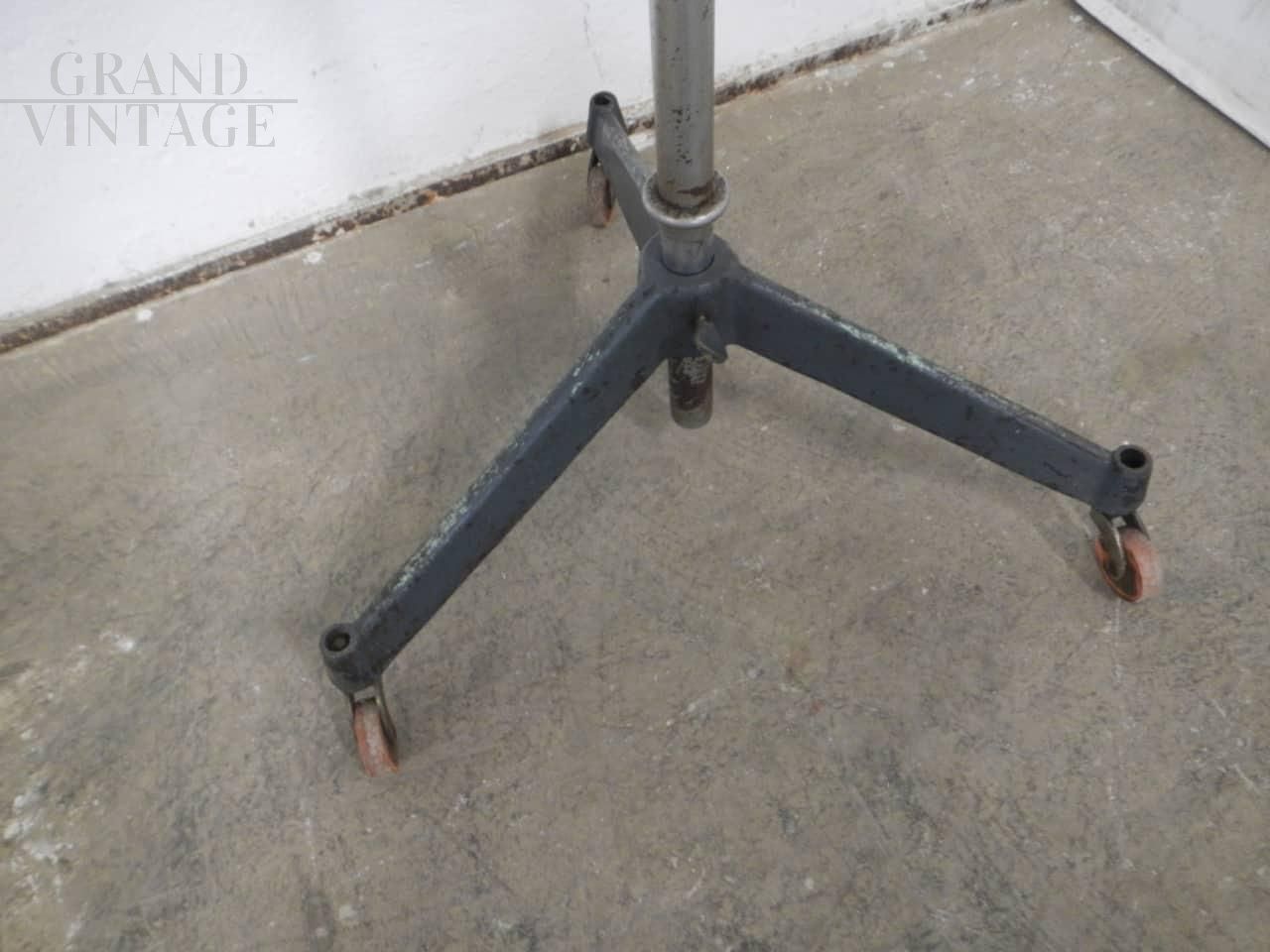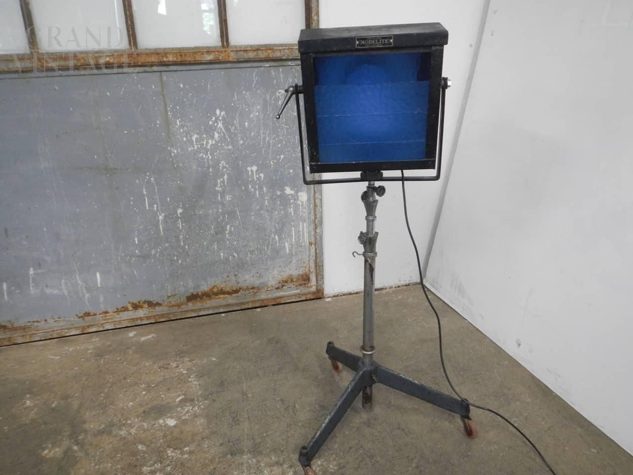Modelite photography spotlight produced by Kodak LTD London in 1930s with blue glass, black lacquered metal structure and metal base with wheels, adjustable in 3 heights: 120, 160 or 200 cm. Removable stand. In good condition.
