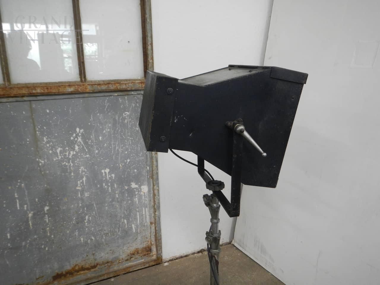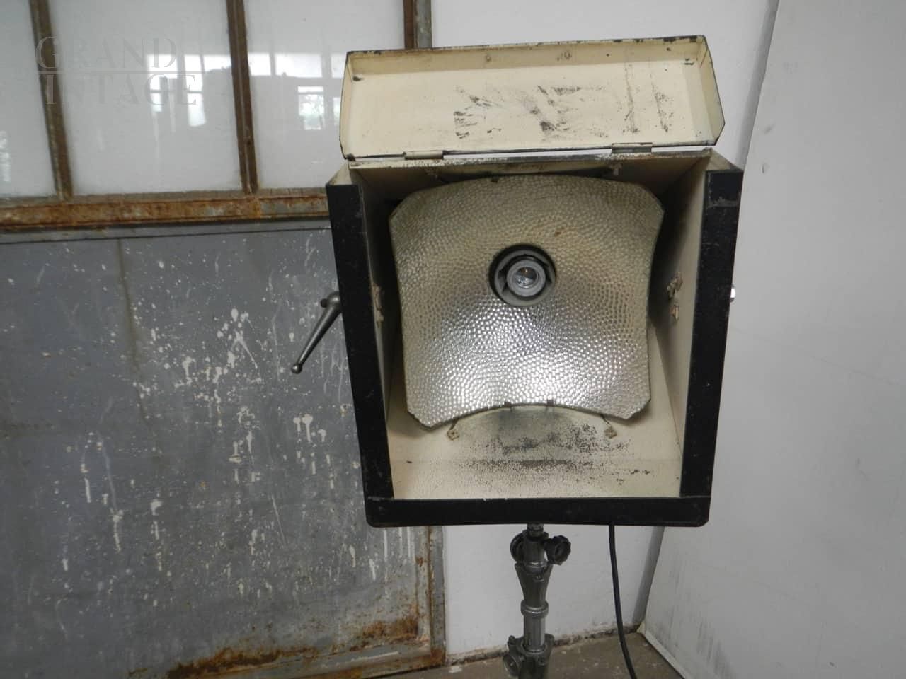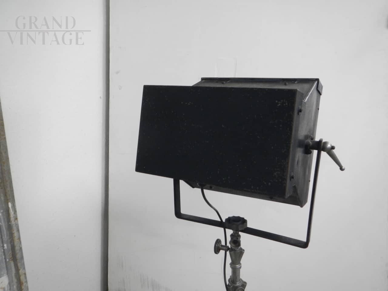Modelite photography spotlight produced by Kodak LTD London in 1930s with blue glass, black lacquered metal structure and metal base with wheels, adjustable in 3 heights: 120, 160 or 200 cm. Removable stand. In good condition.