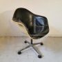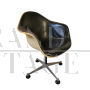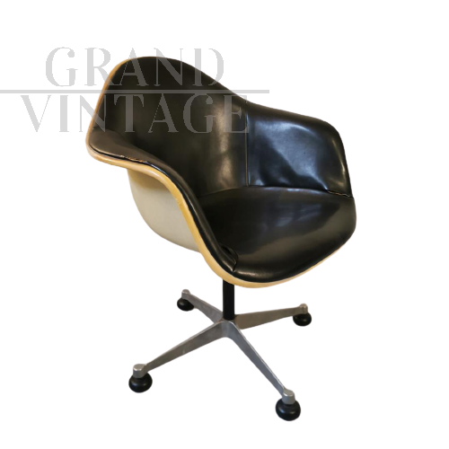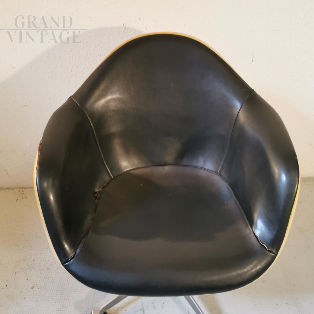 Molded Fiberglass Chair by Charles and Ray Eames for Herman Miller. To guarantee originality, it has slight tears on the leather to be repaired or reupholstered.