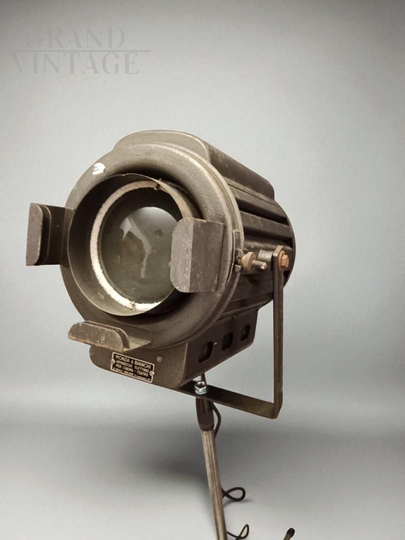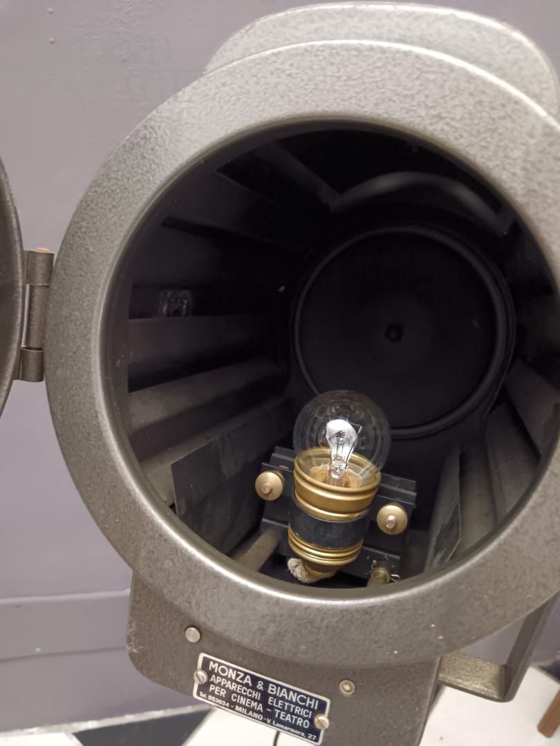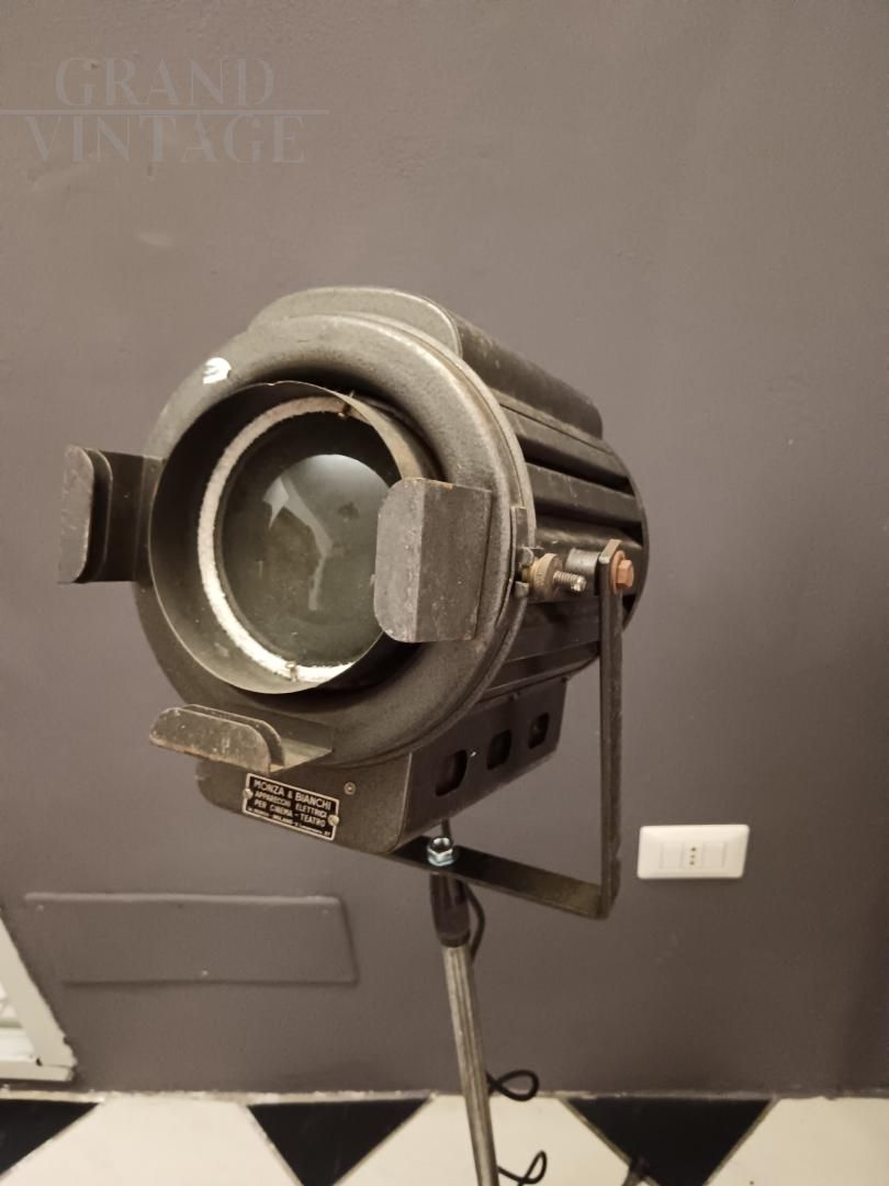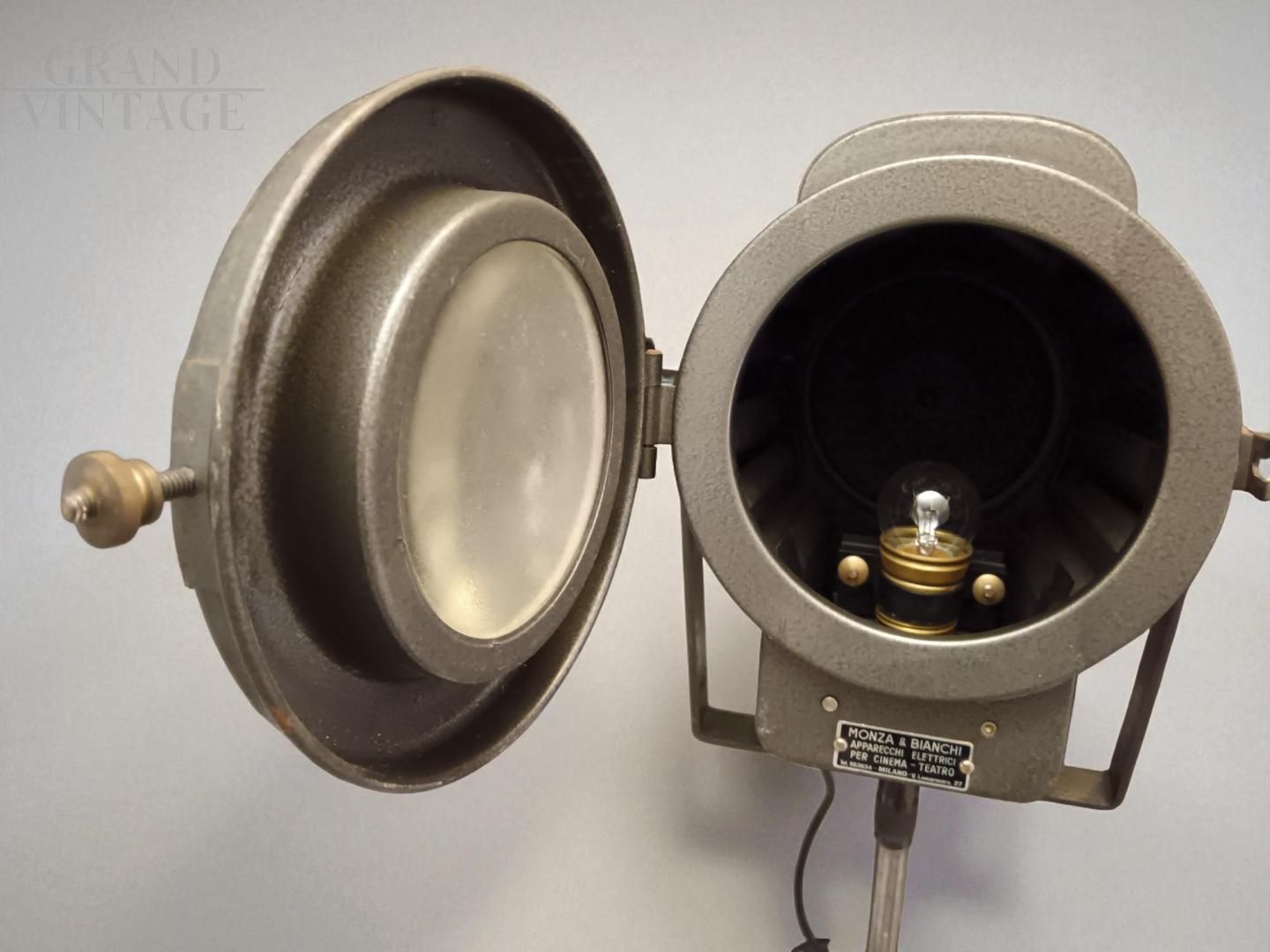 Beautiful, working 1950s floor-standing cinema spotlight, complete with tripod, bearing the manufacturer's nameplate, Monza & Bianchi, Italy - Milan. In excellent condition throughout and fully functional, it's perfect for illuminating a corner or a work of art.