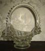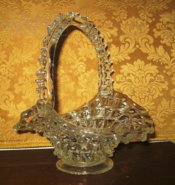 Basket with transparent glass handle, with air bubbles inside and welding on the bottom. Perfect state of conservation.