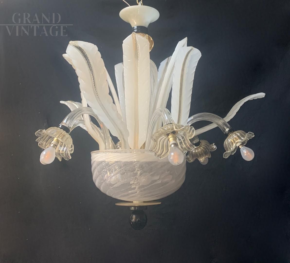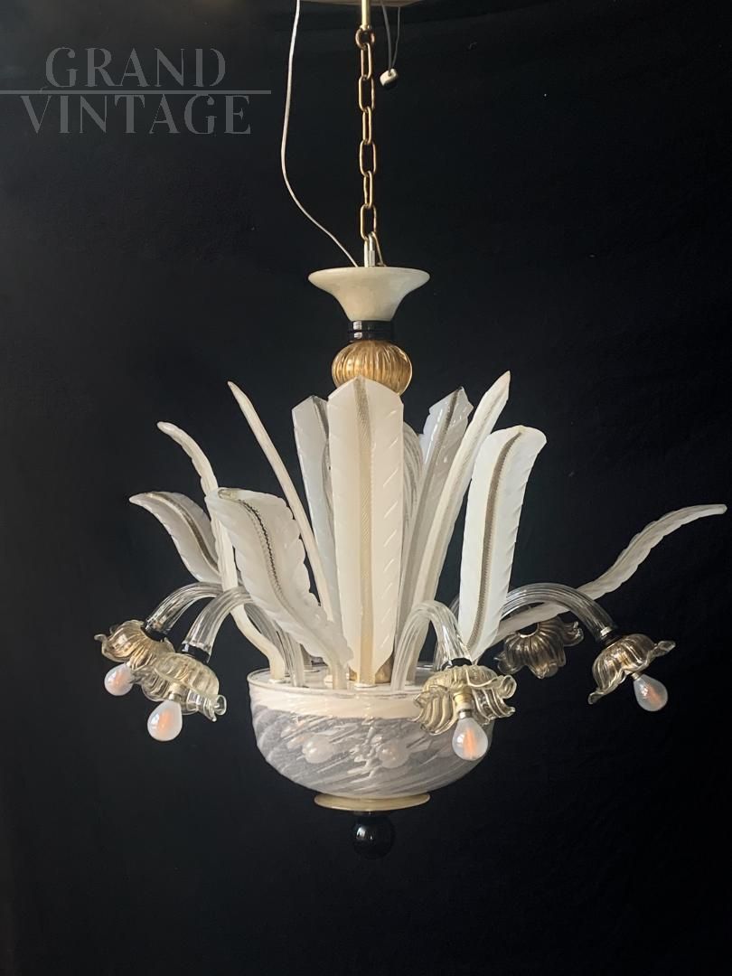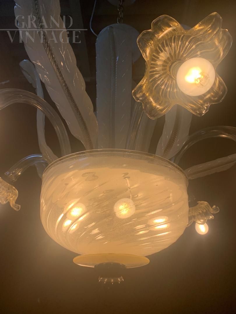 Beautiful Murano glass chandelier from the 60s with 6 lights attributable to Seguso company.