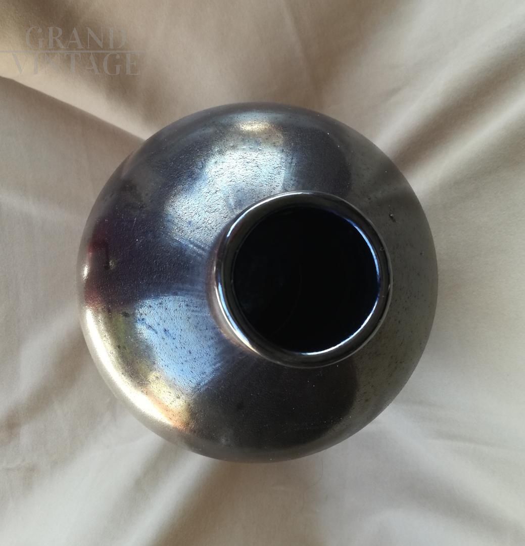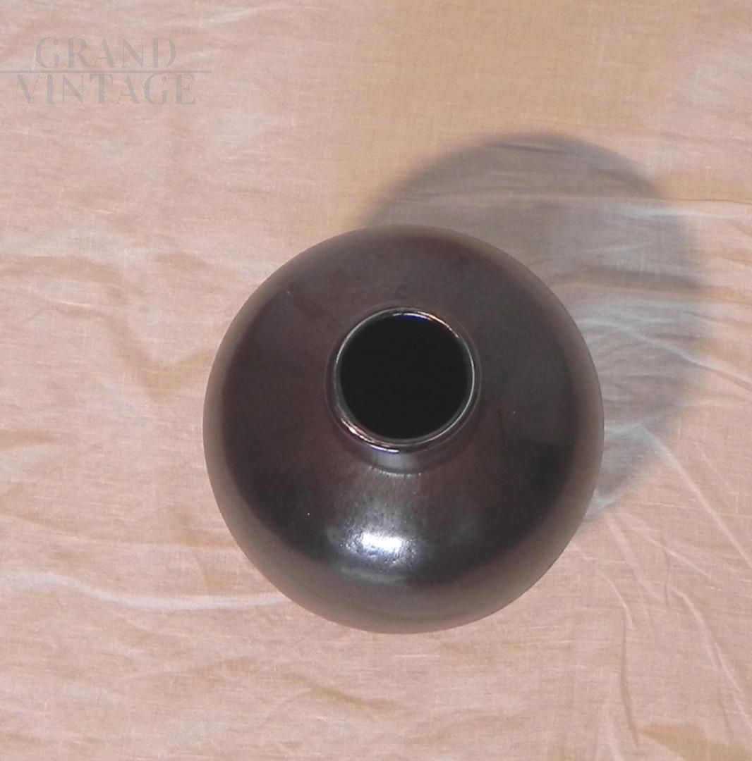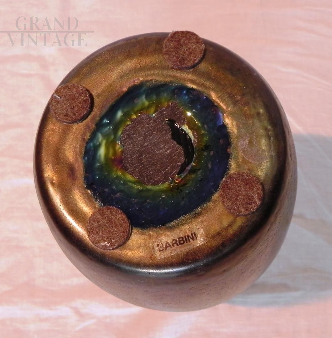 Vintage vase designed by Alfredo Barbini in silicon-treated Murano glass, Italy 1990s. The vase or bottle is made of heavy solid glass, silicon treatment has been carried out on the surface. On the back you can see the chromatic overlapping of oxides to obtain the brown - burgundy colour. The Barbini label is present on the base. Weight 2kg. There are no defects.