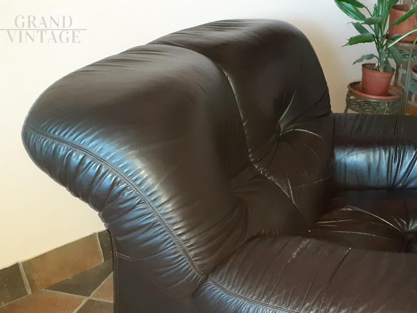 Set of 3 vintage armchairs in full grain black leather, 1970s