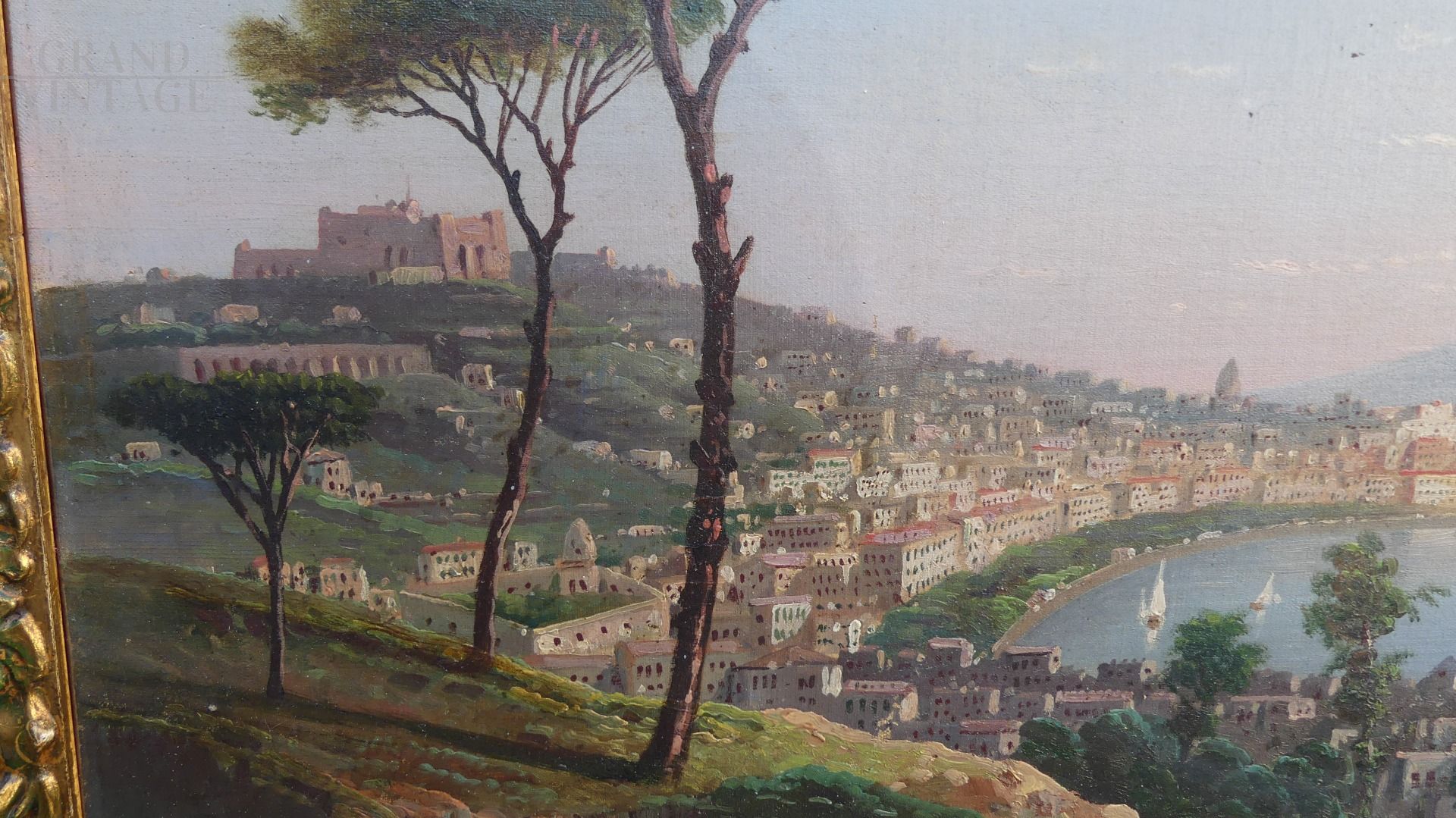 Pair of paintings by Raimondo Scoppa, late 19th century, depicting the Gulf of Naples and a panorama of Sorrento, oil on canvas, recently framed.