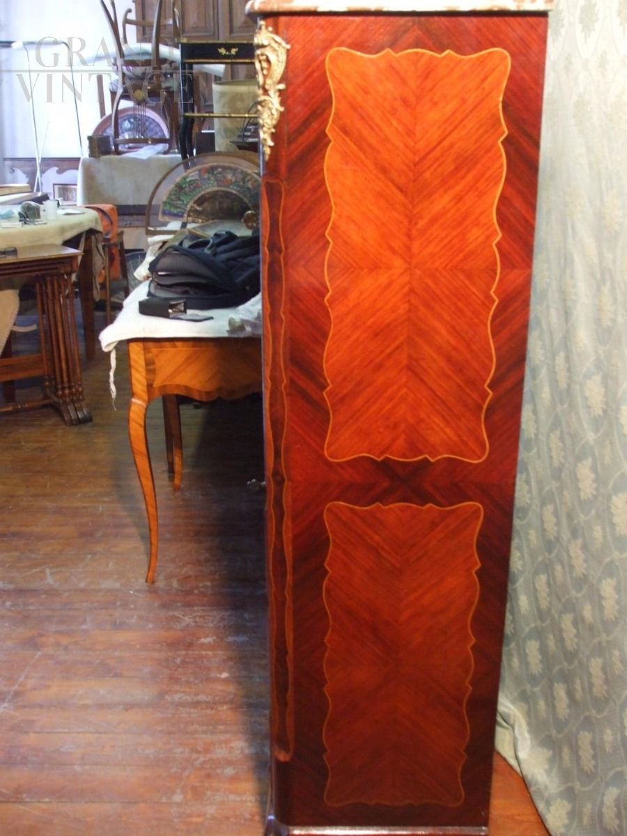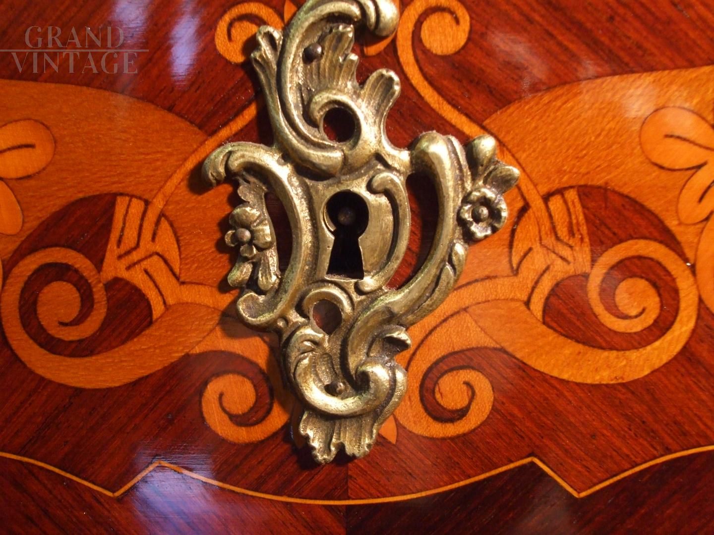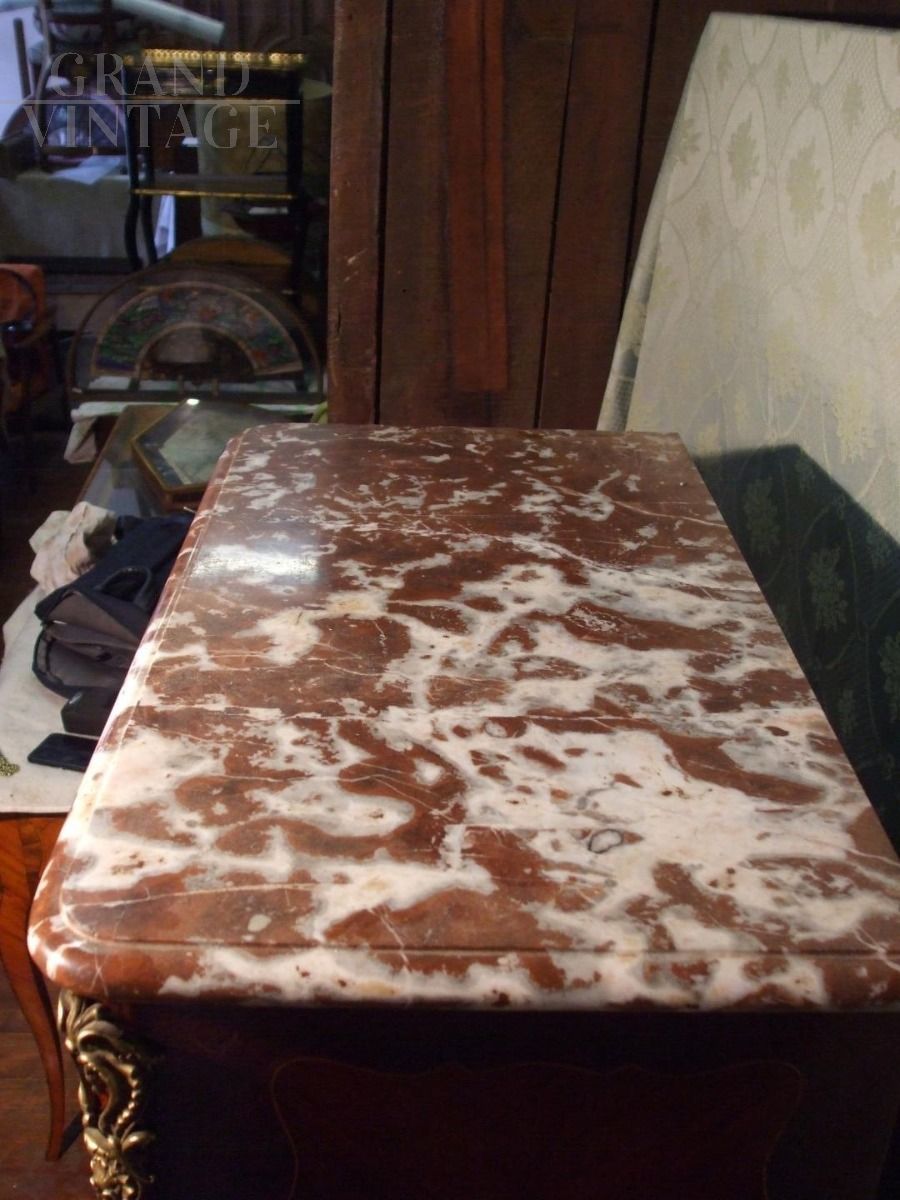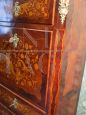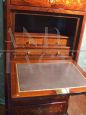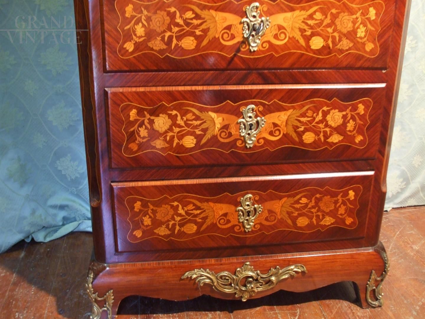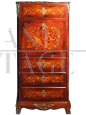 Secretaire Napoleone III con bronzi, intarsi e piano in marmo