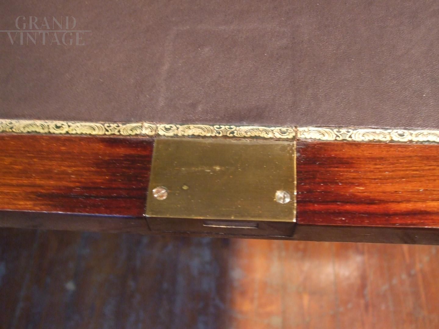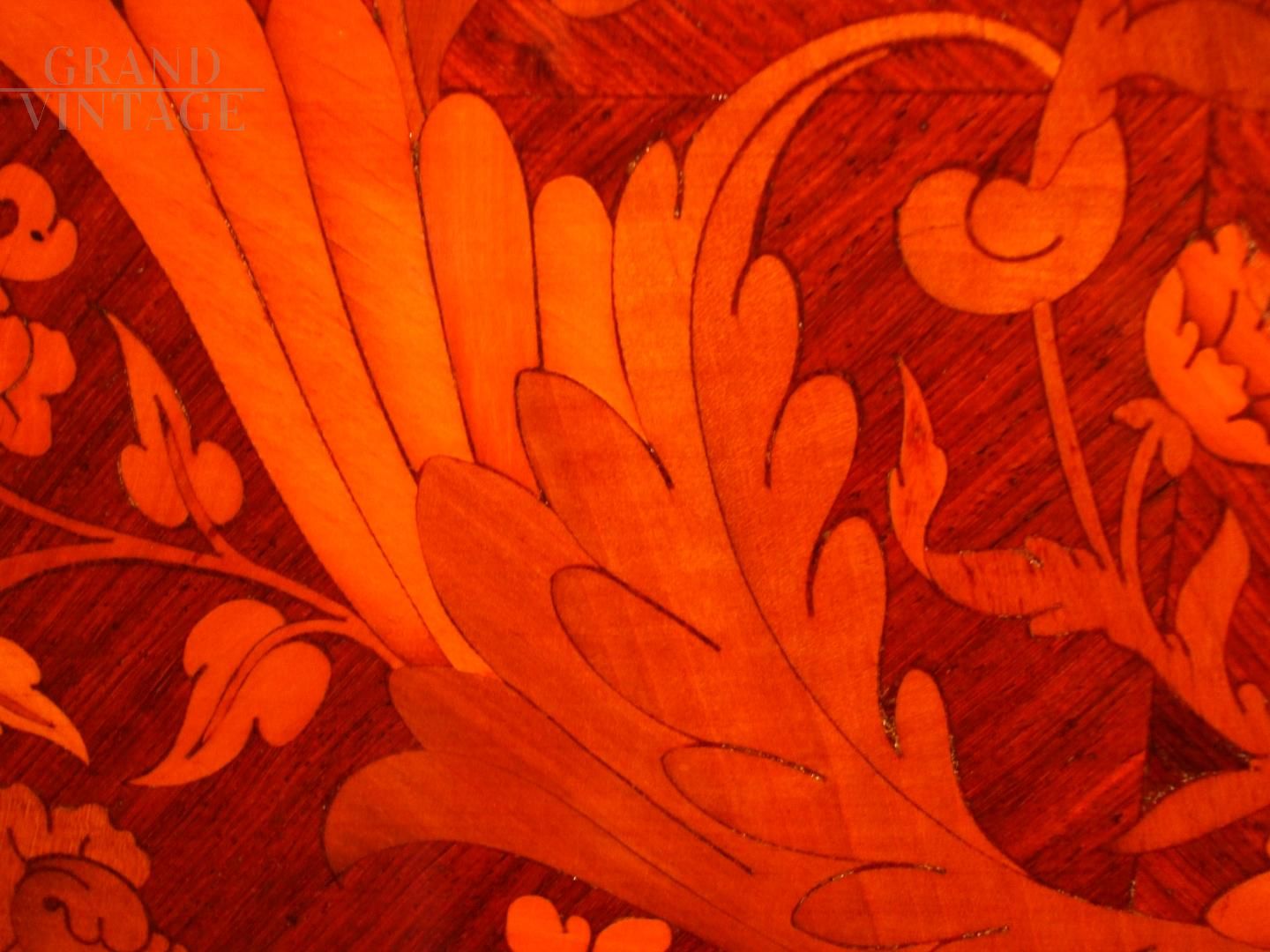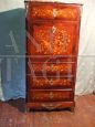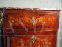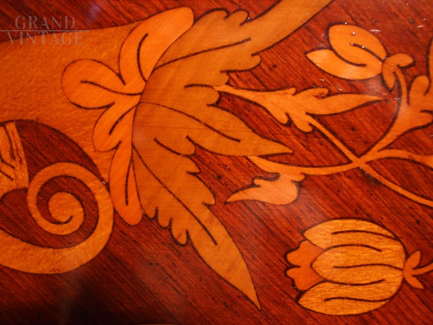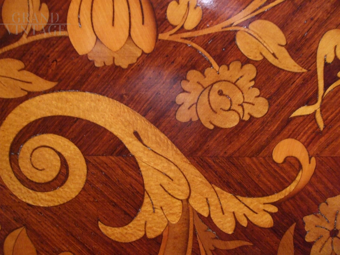 Secretaire Napoleone III con bronzi, intarsi e piano in marmo