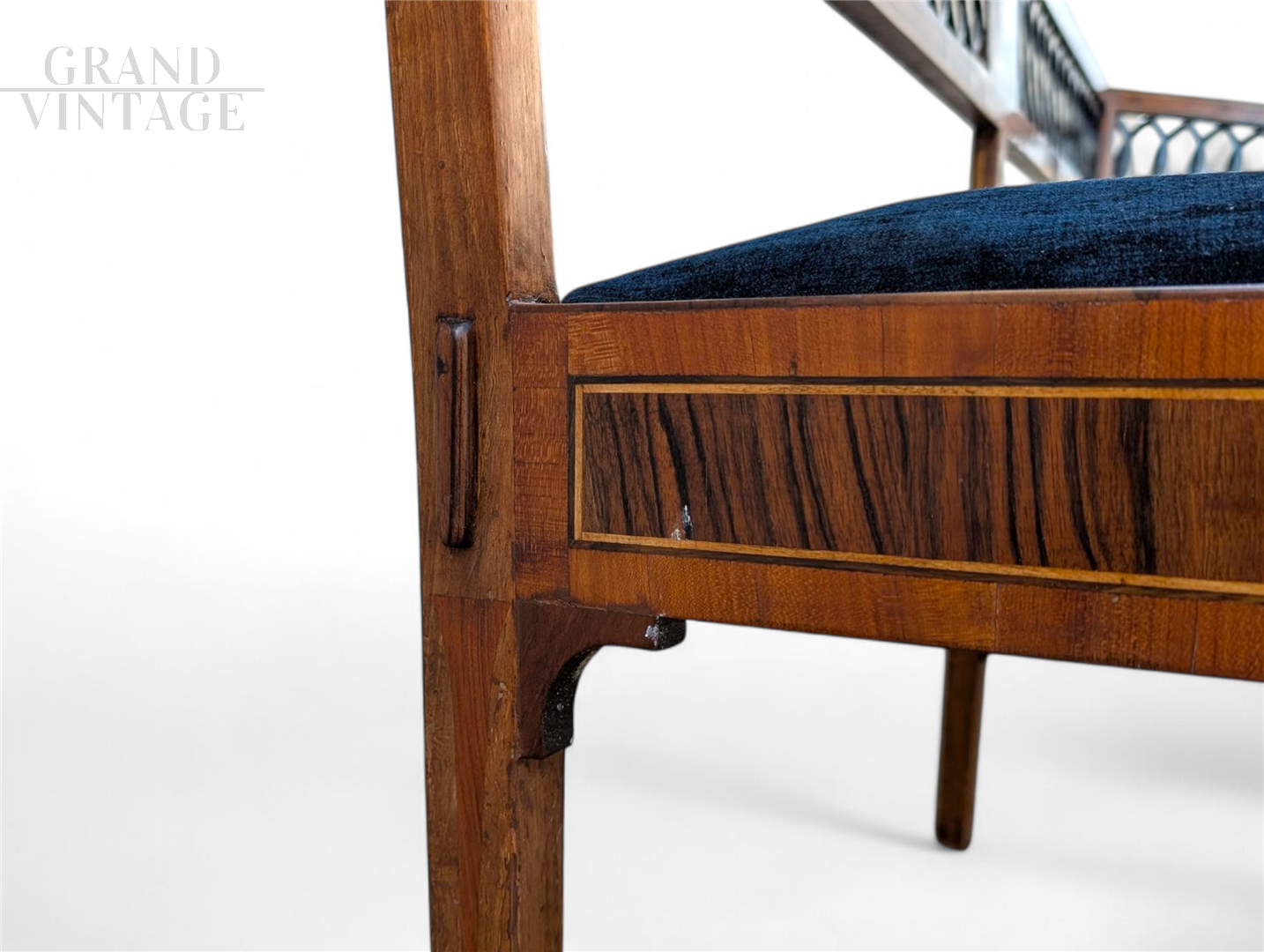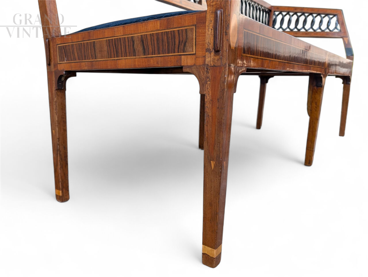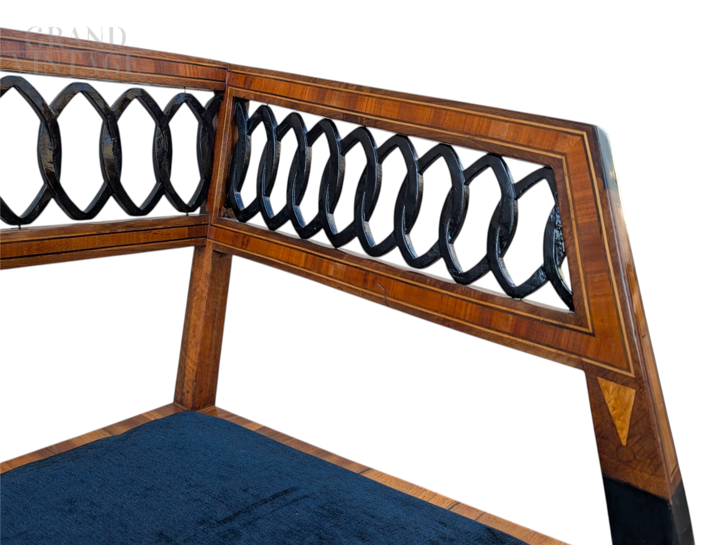 Neoclassical style bench in walnut with maple inlays