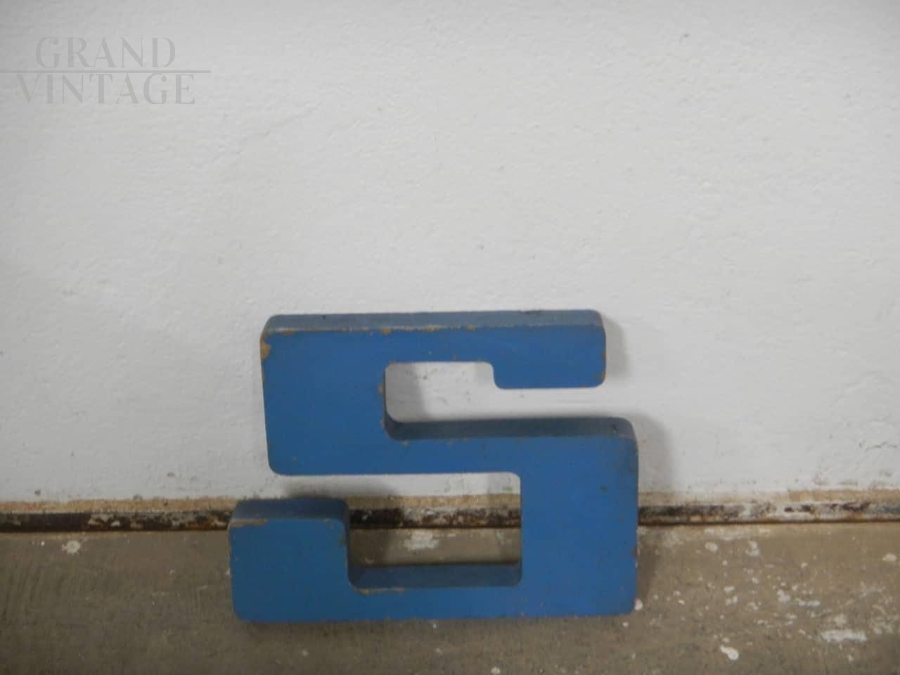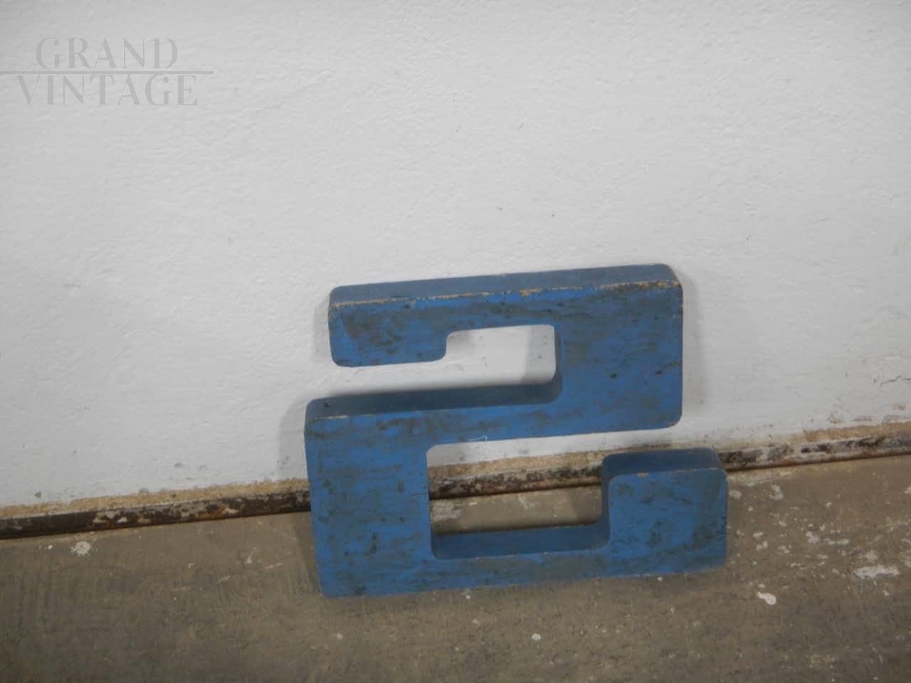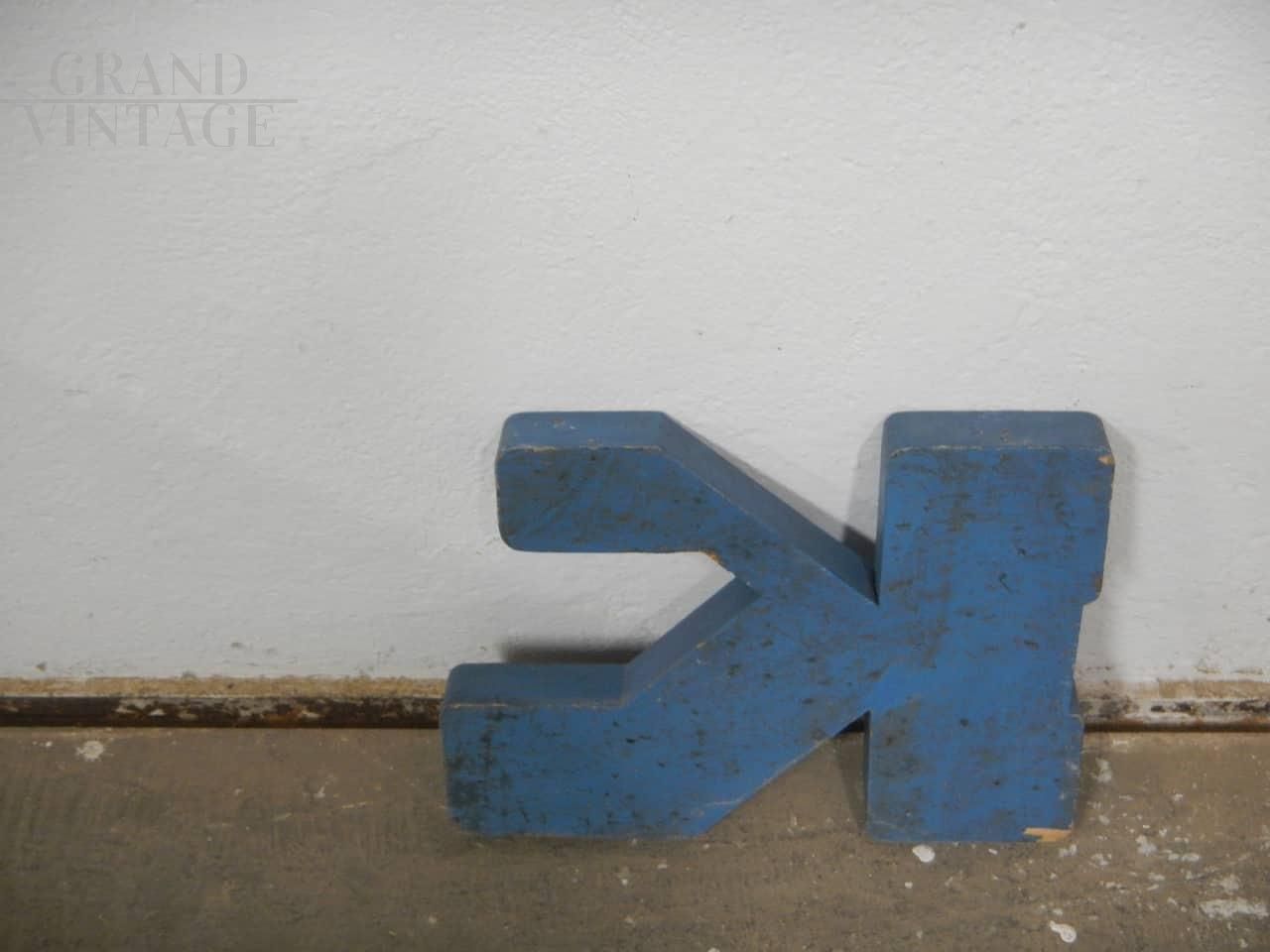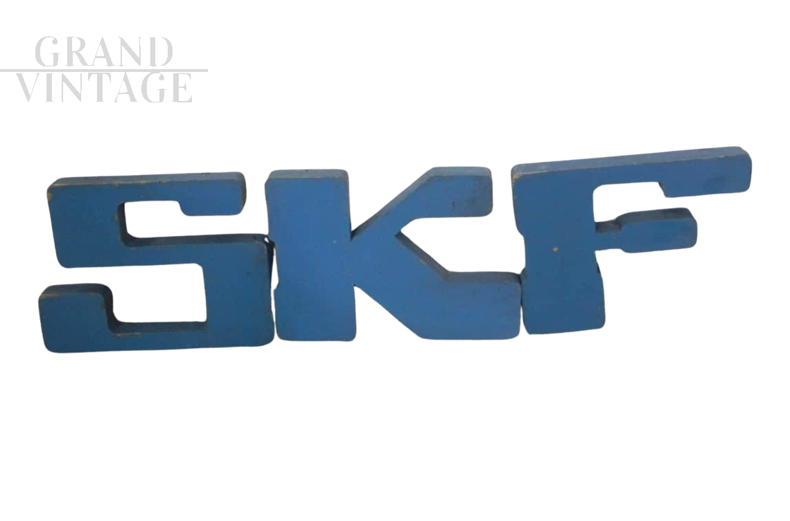 Vintage industrial sign of the Swedish bearing company NKF - Svenska Kullagerfabriken, consisting of 3 letters in blue-stained compressed wood. In good condition, it shows natural signs of use.
