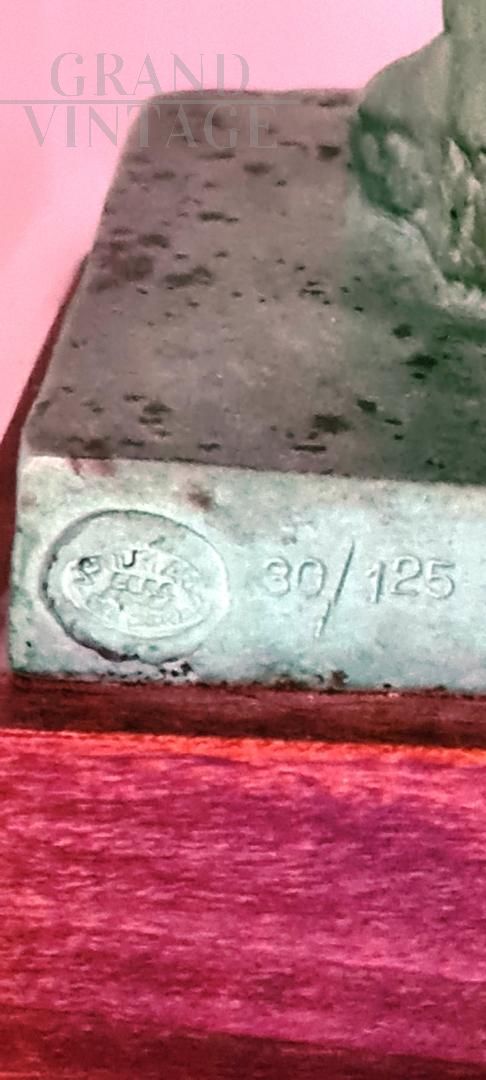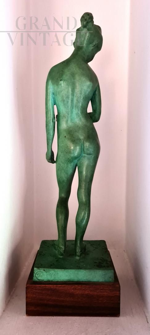 Bronze statue with wooden pedestal depicting the nude of a woman, made with the lost wax technique, features the brand of the Venturi Arte artistic foundry of Bologna and the serial number n.30 / 125.