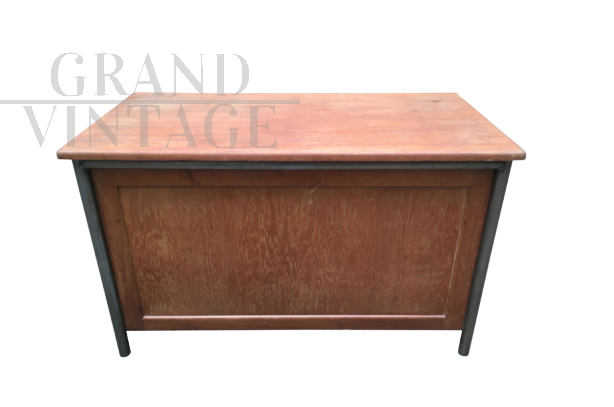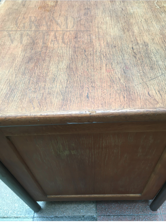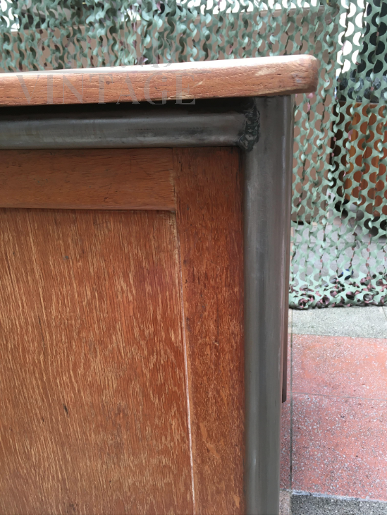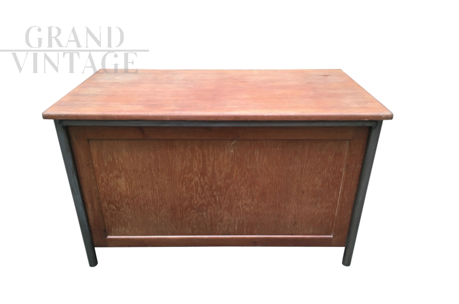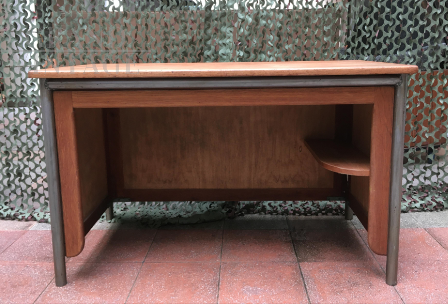 Office desk from 1950s by Jean Prouvé. Tubular iron structure with oak wood surfaces.