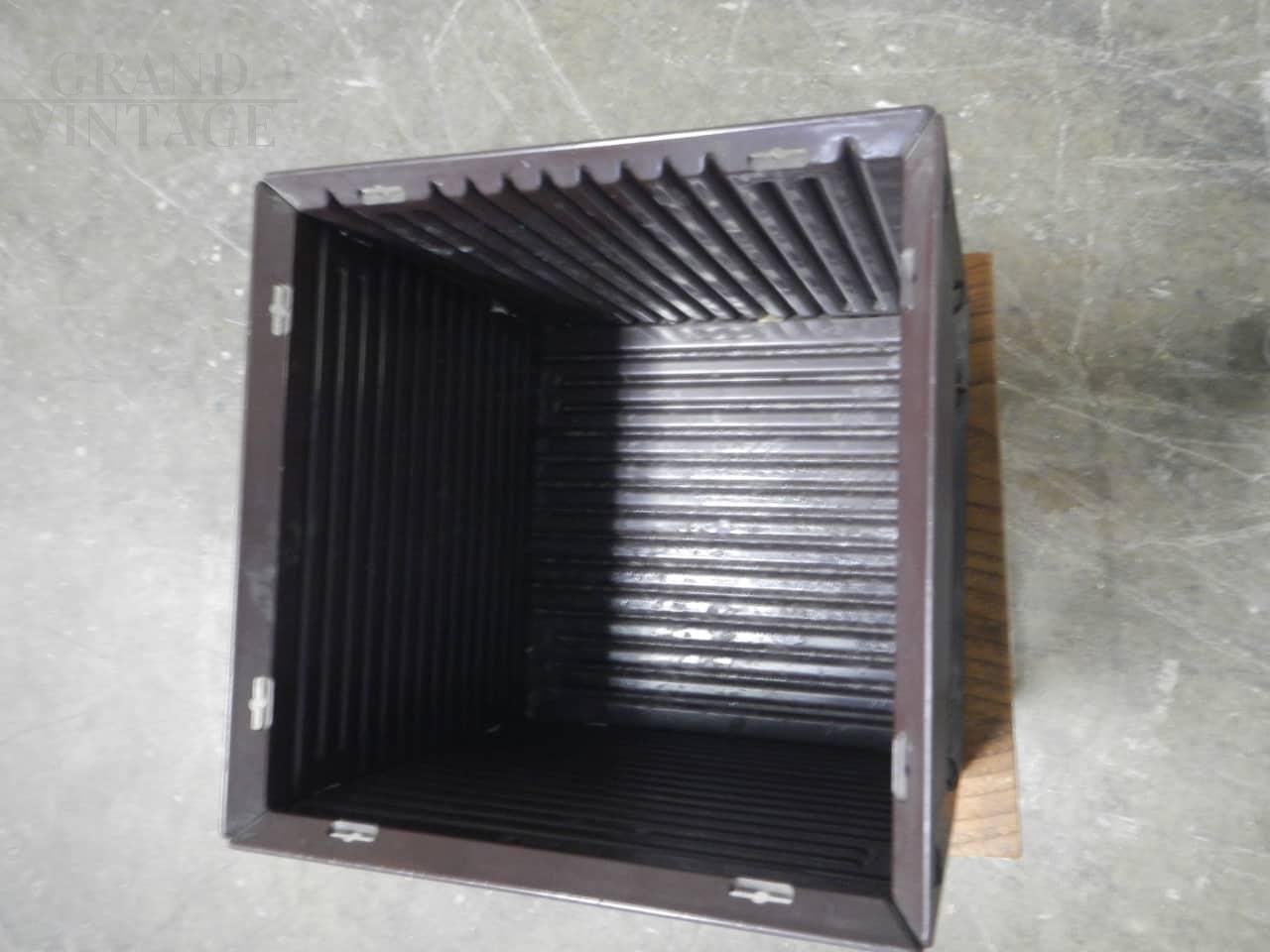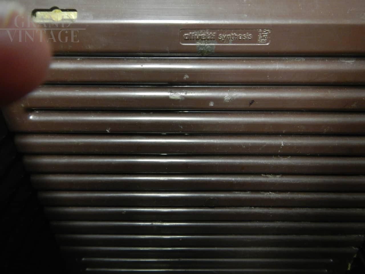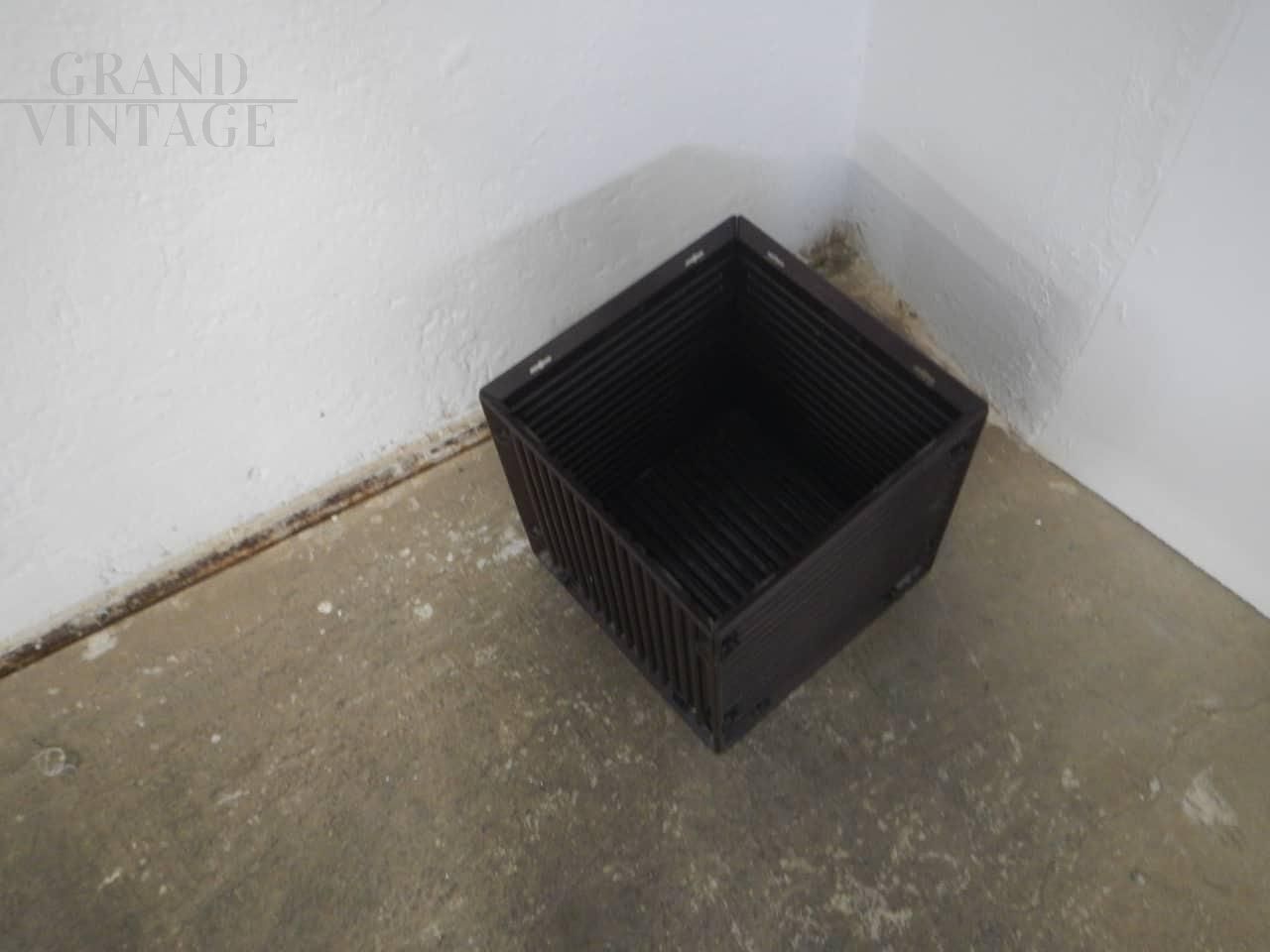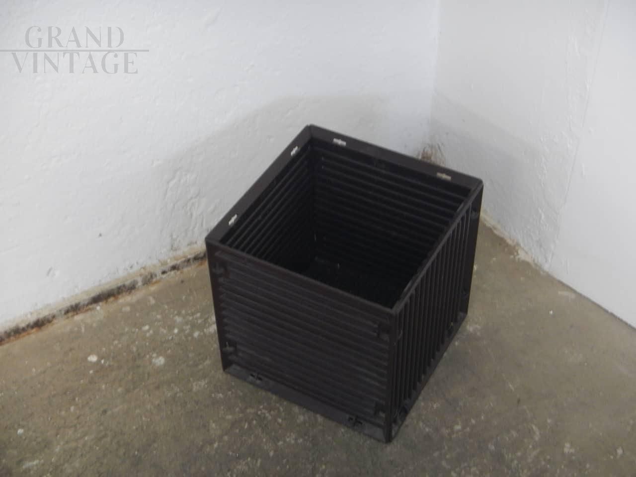 Olivetti Synthesis brown plastic paper basket container, with clearly visible branding, shows natural signs of wear, in particular the bottom is damaged.