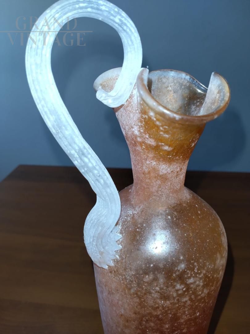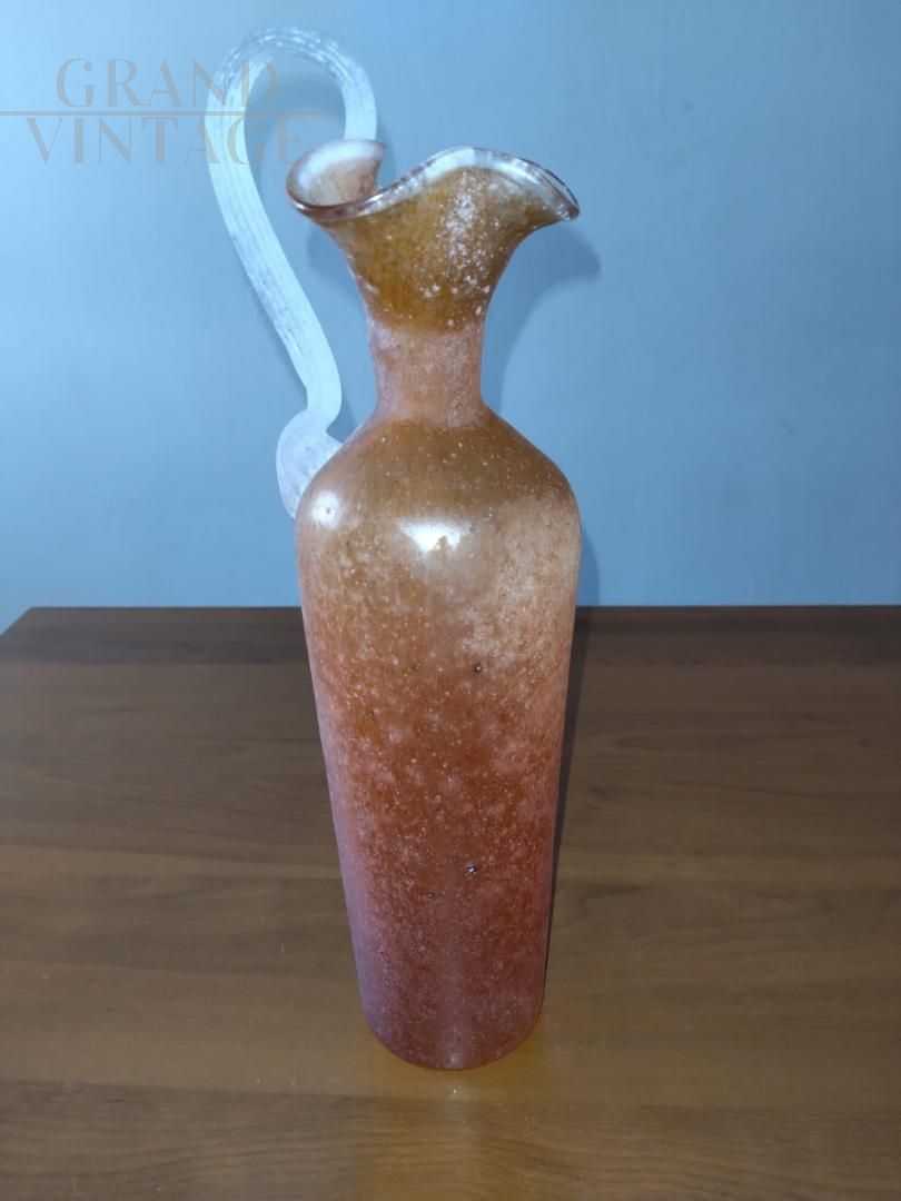 Beautiful antique sandblasted glass bottle vase in shades of orange, from the 1950s. The object is in excellent condition and is ideal for decorating any room in your home with its bright colour.