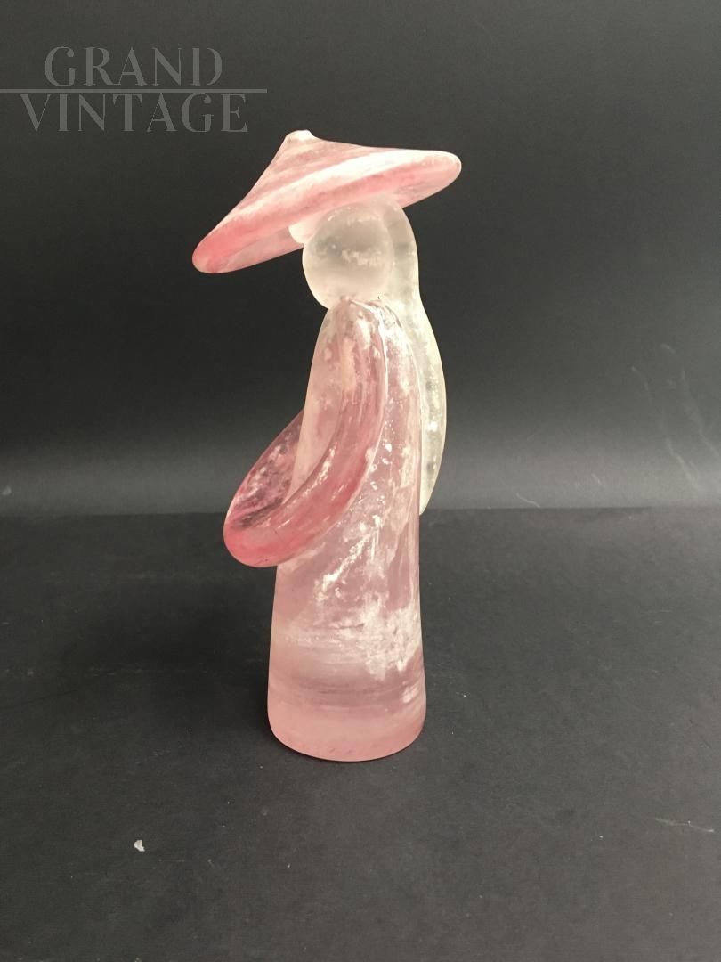 Oriental statuette in pink Murano glass, Seguso company from the 1960s