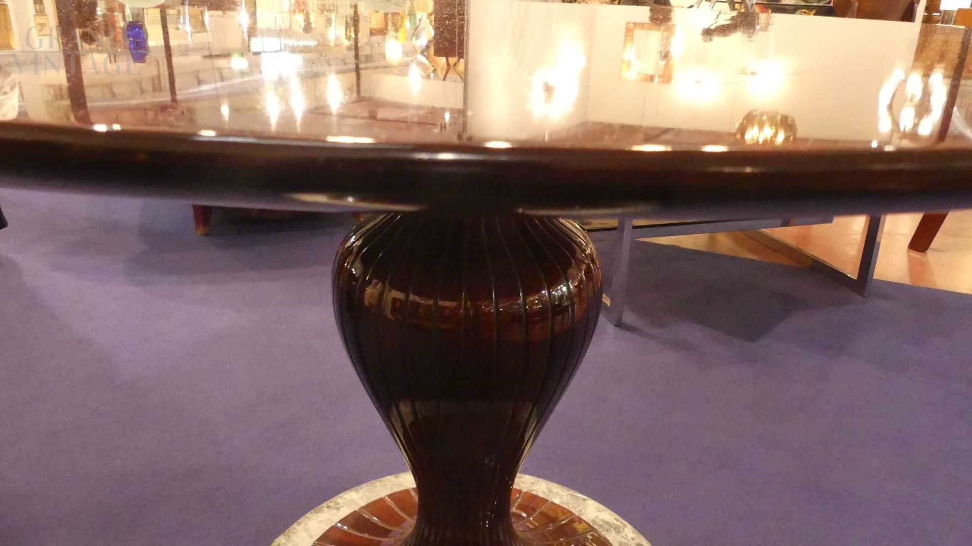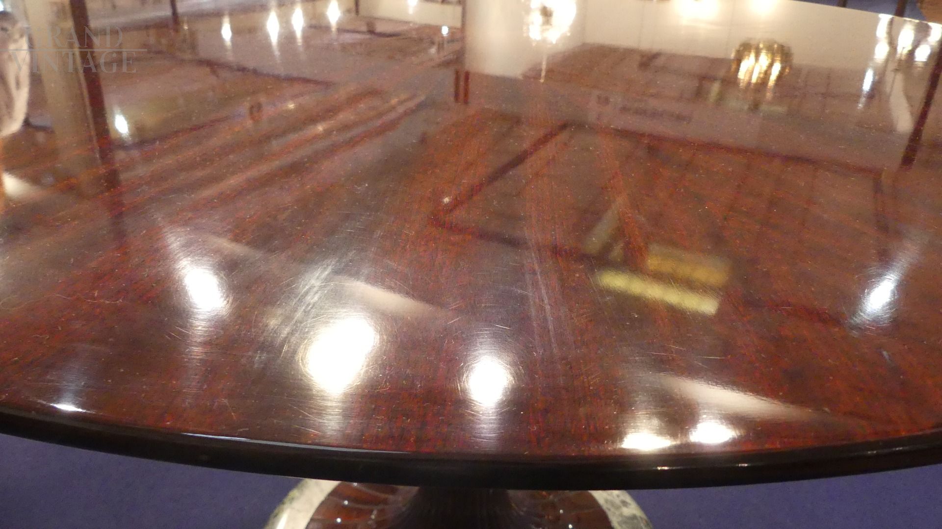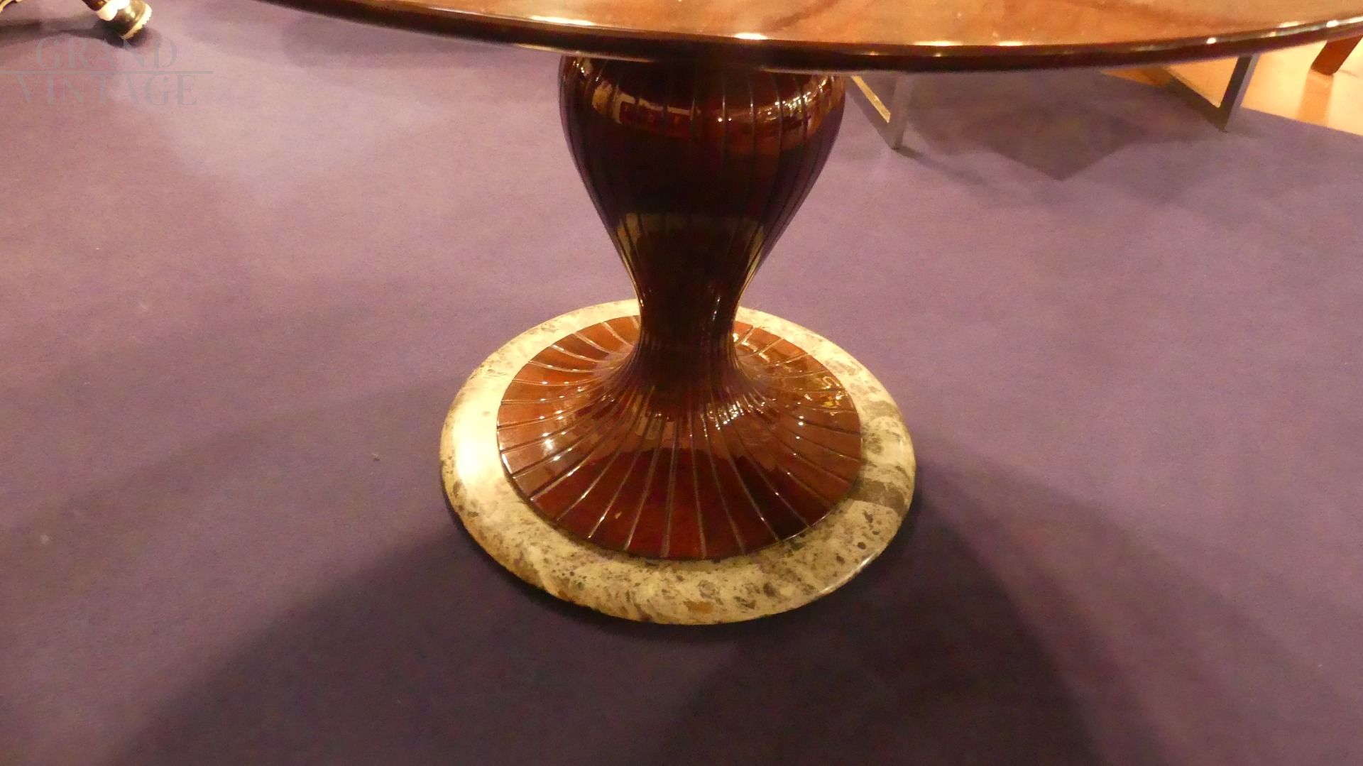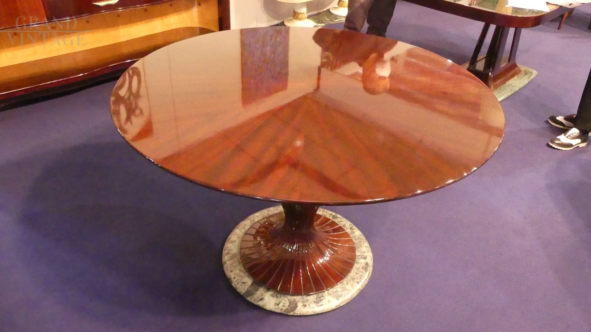 Osvaldo Borsani 1950s table with round top, in rosewood, with beautiful grooved leg with a particular rounded shape and foot in green alps marble.