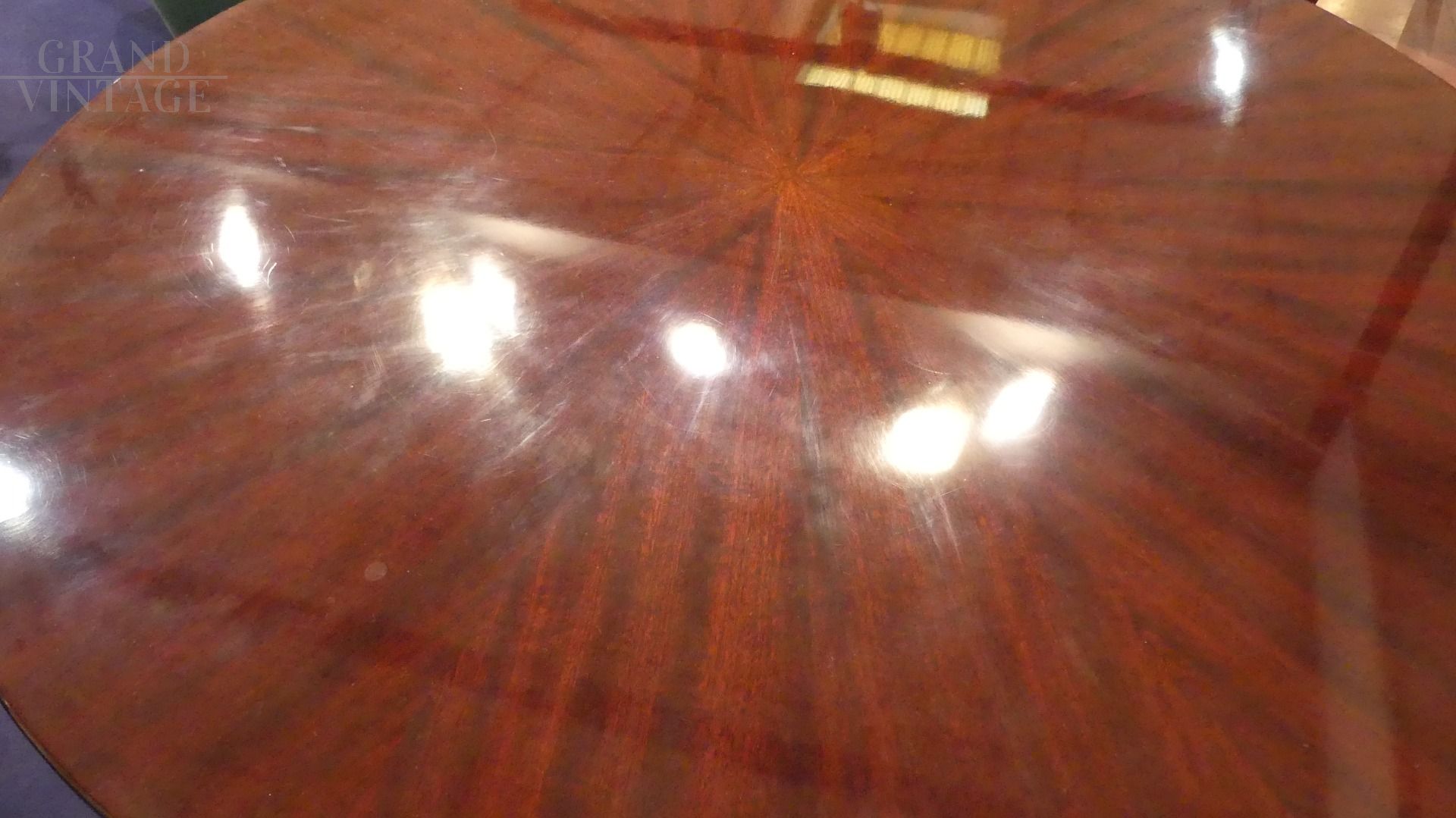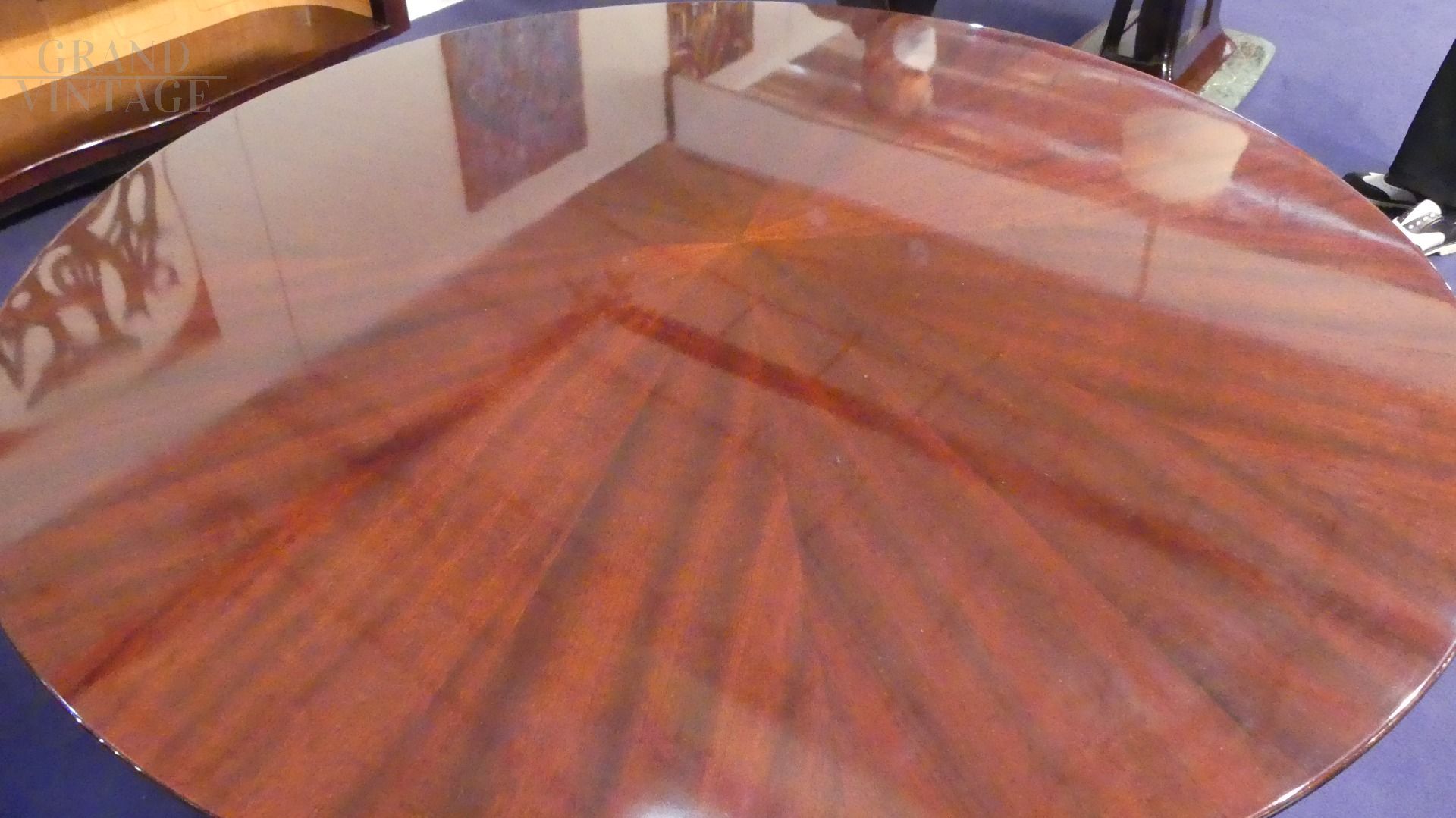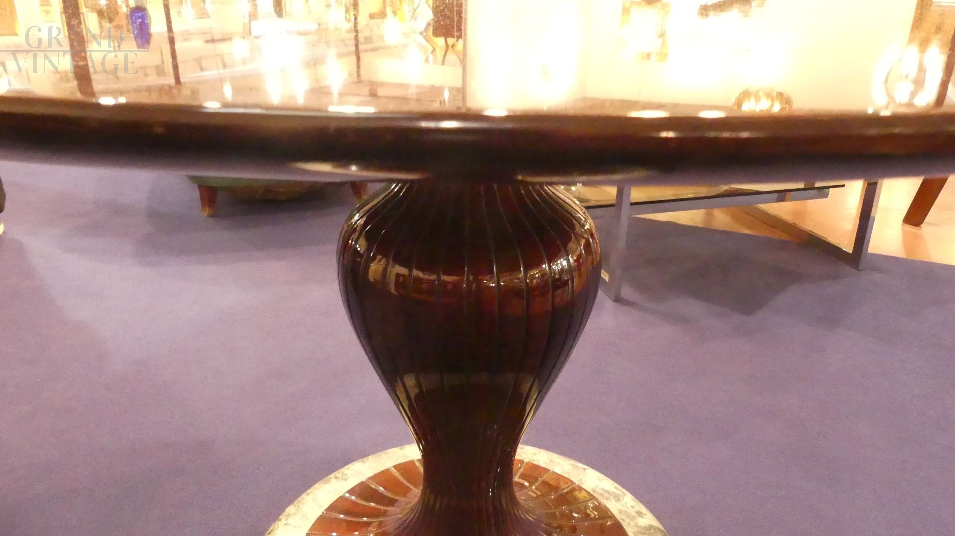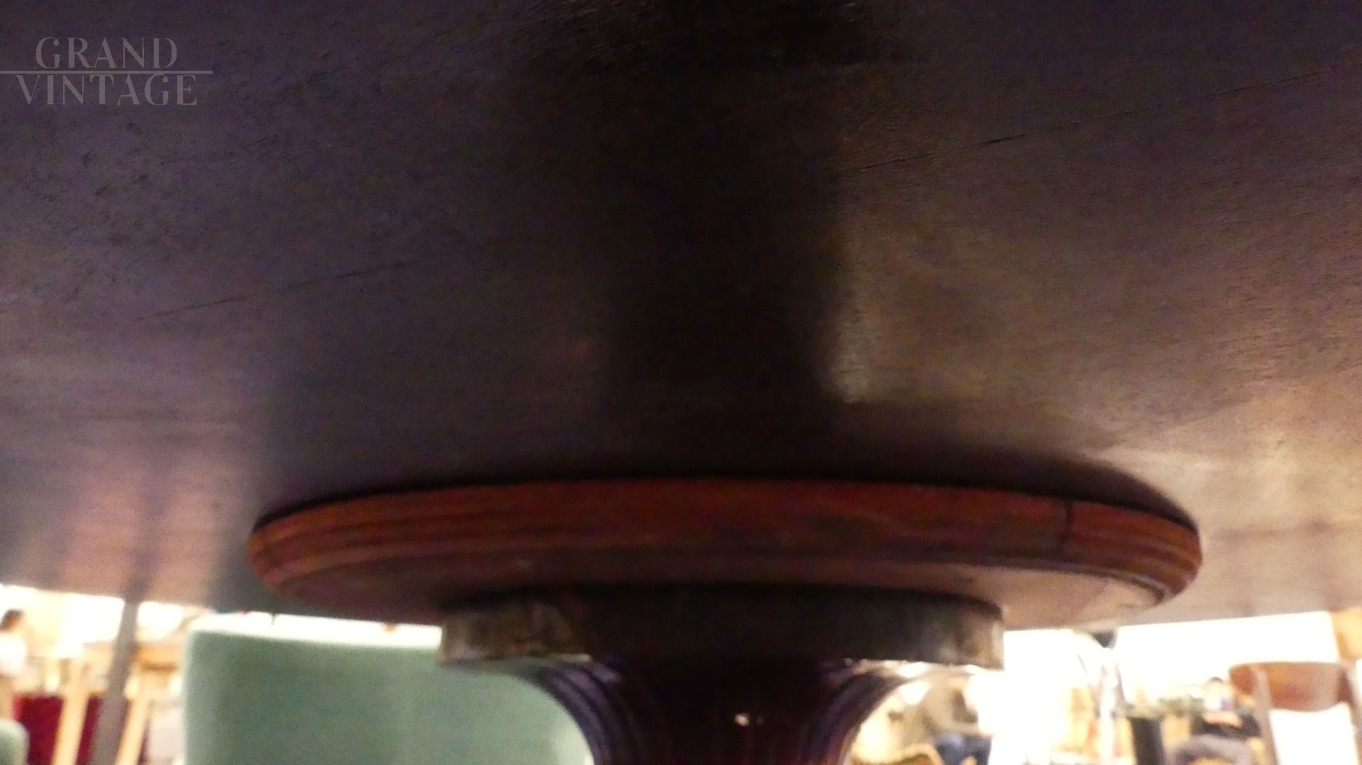 Osvaldo Borsani 1950s table with round top, in rosewood, with beautiful grooved leg with a particular rounded shape and foot in green alps marble.