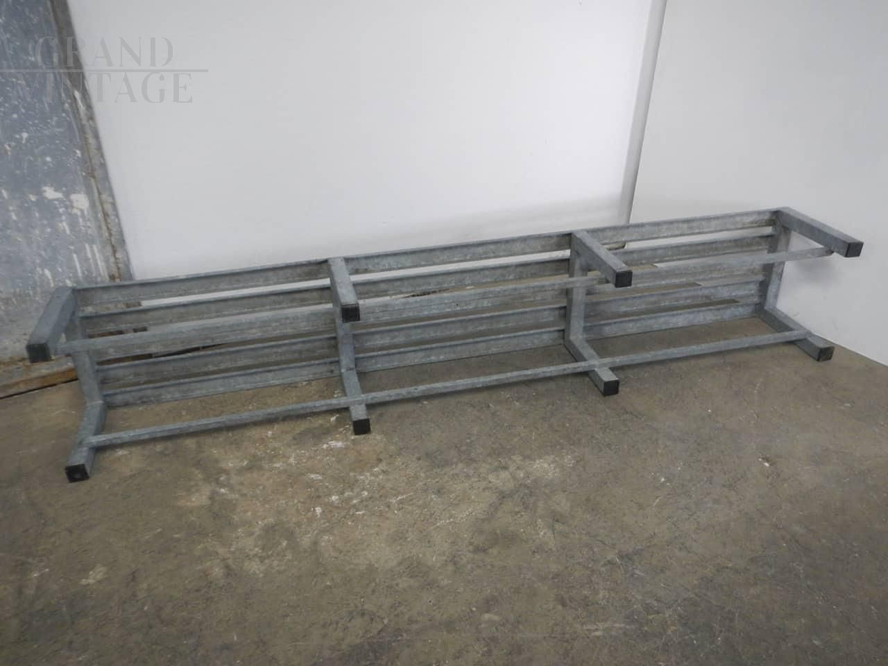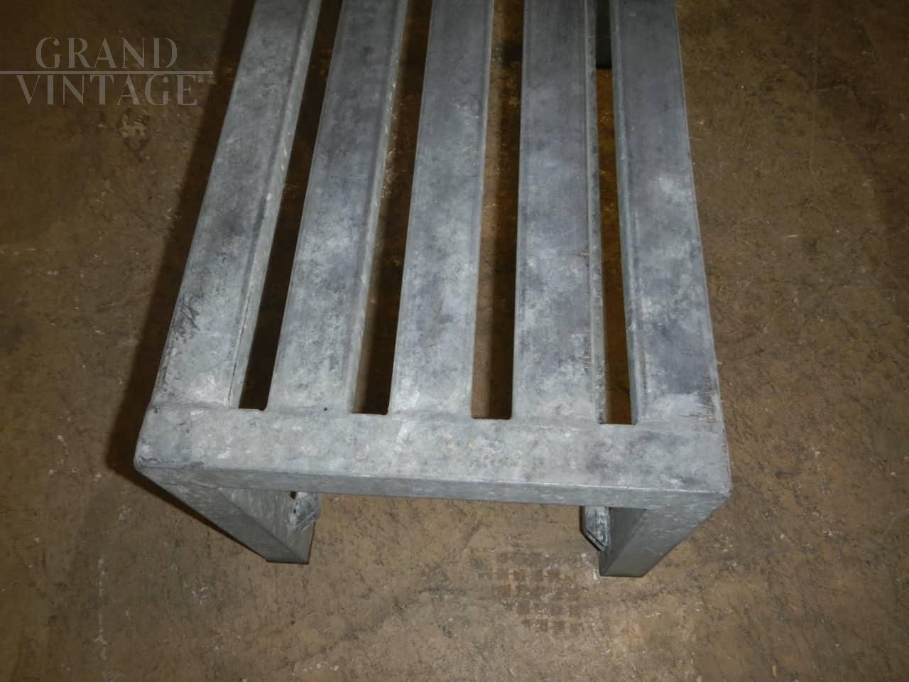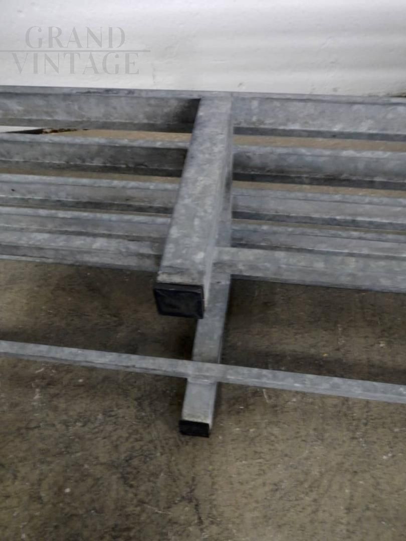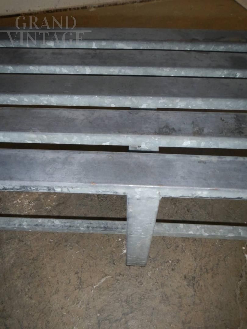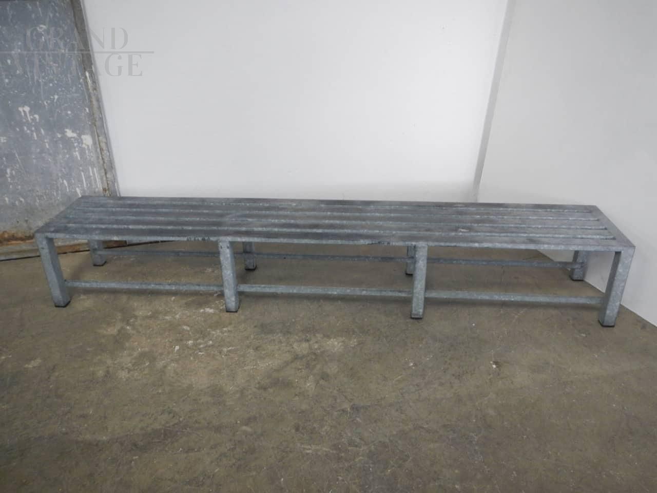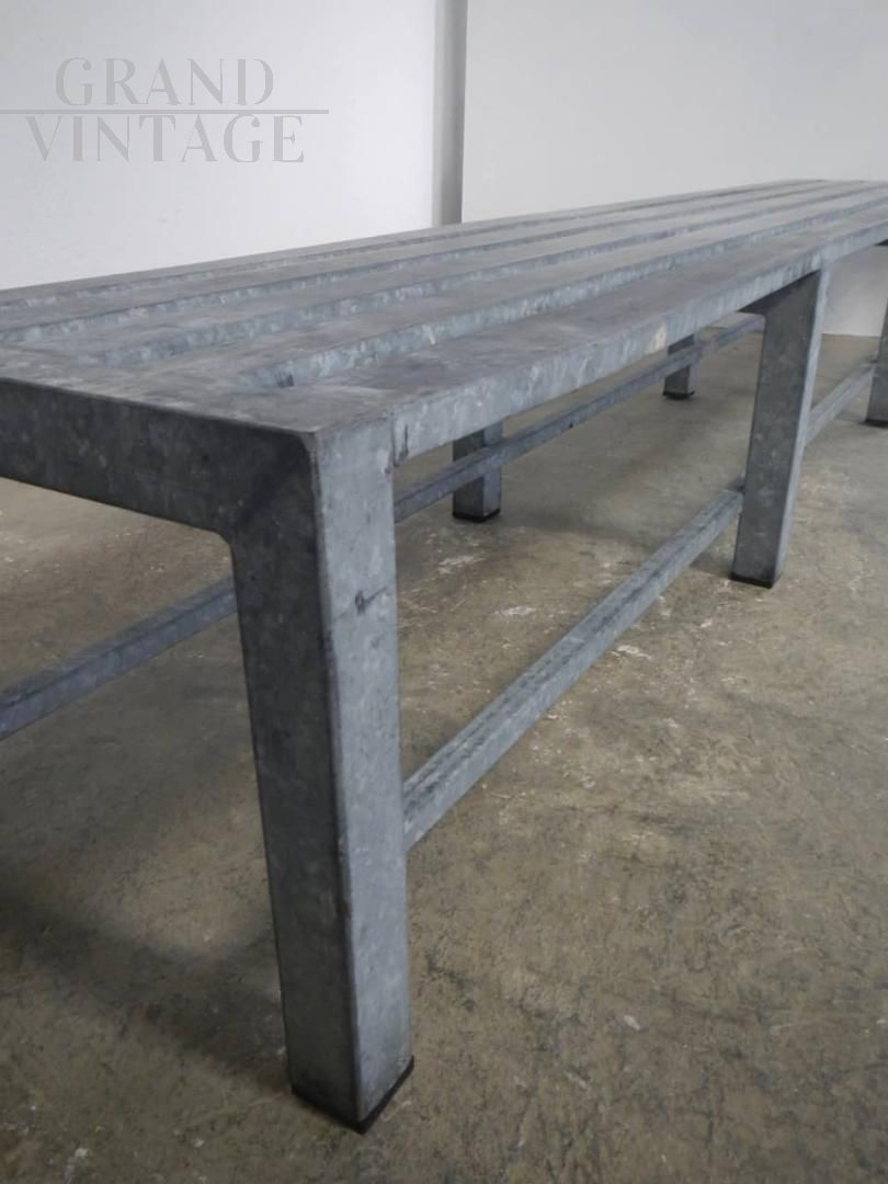 Vintage outdoor bench in galvanized metal, 1970s. Pair available.