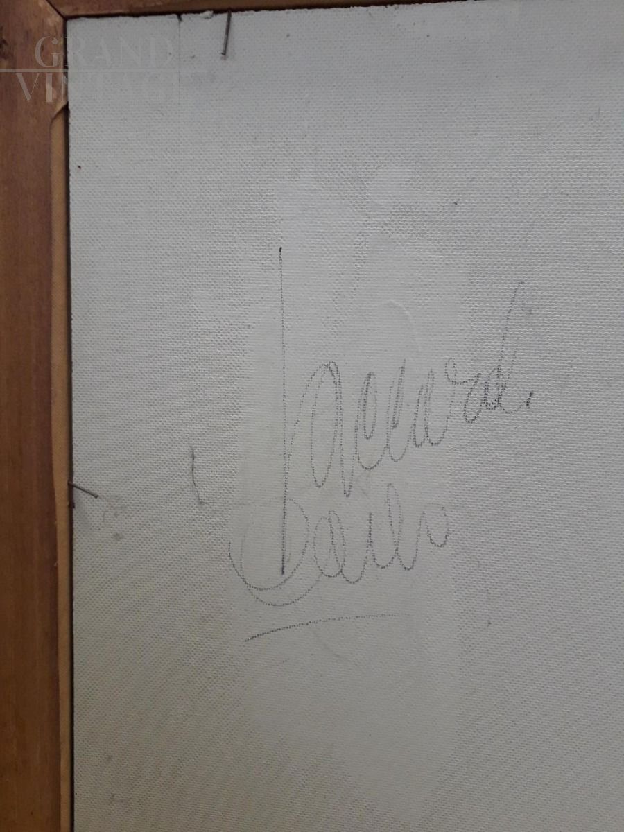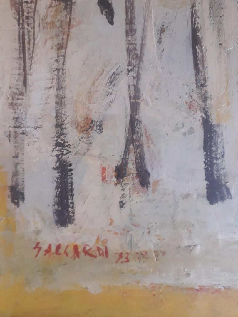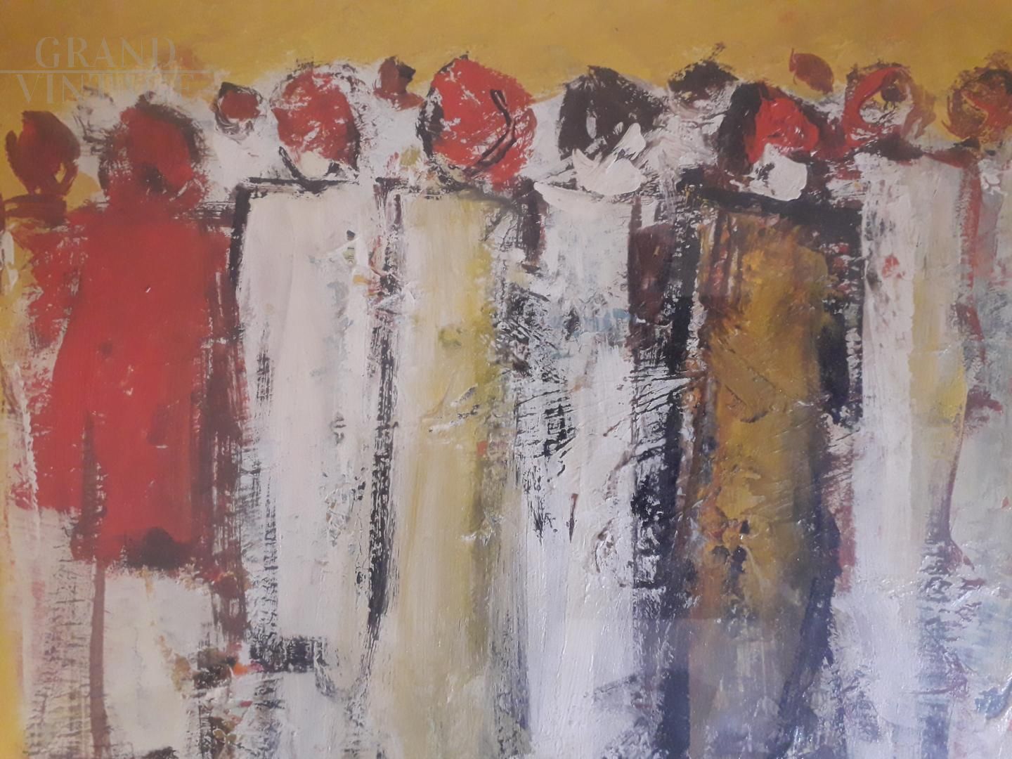 Eight figures, oil painting on canvas by Carlo Saccardi, signed, canvas measures 30 x 40 cm, measurements with frame 52 x 61 x 5 cm.