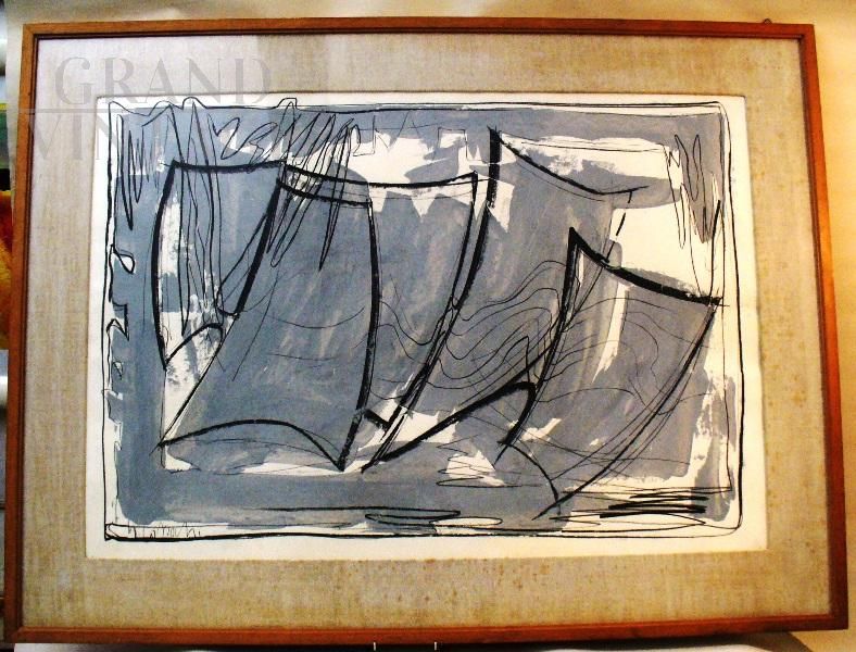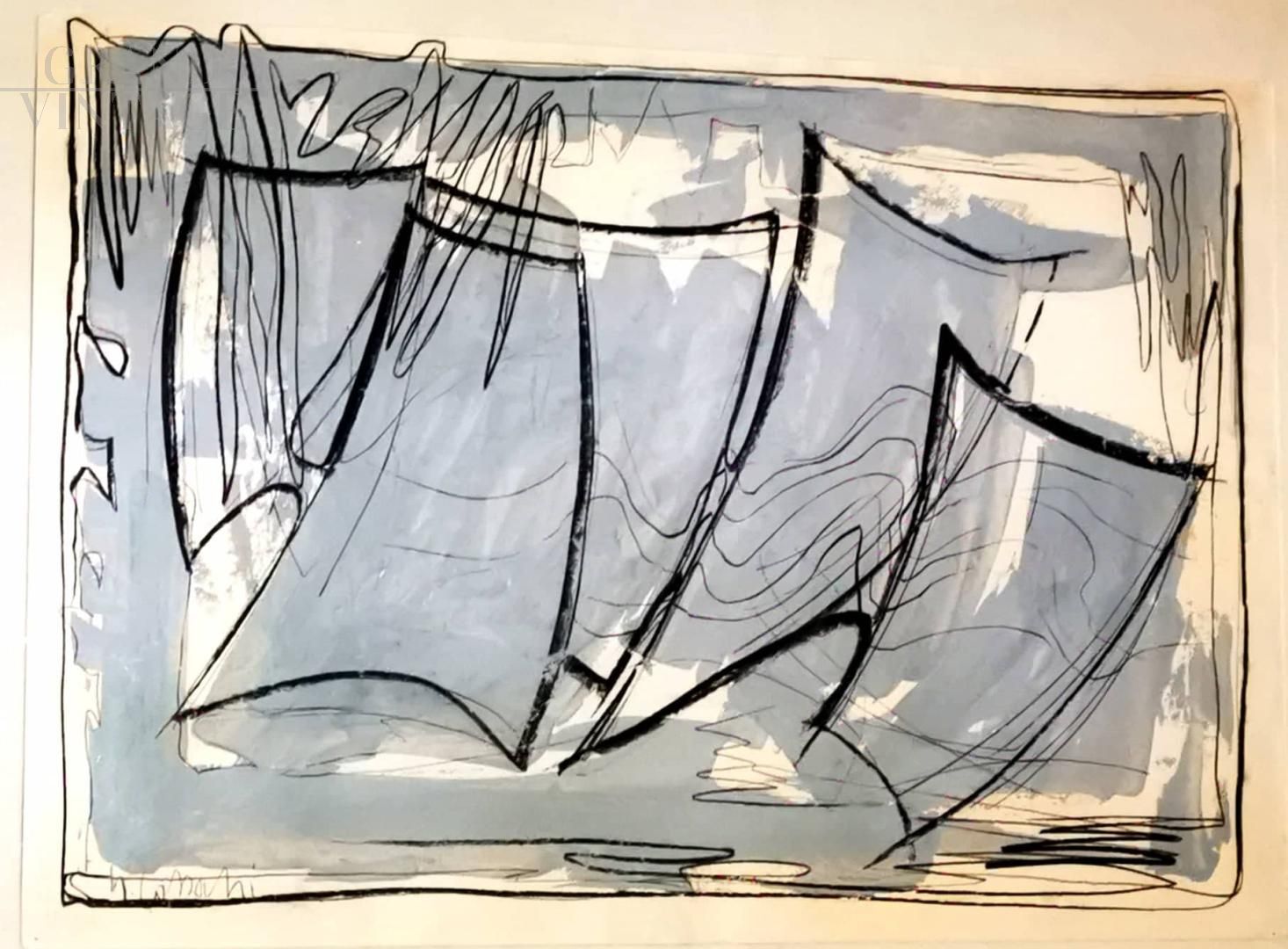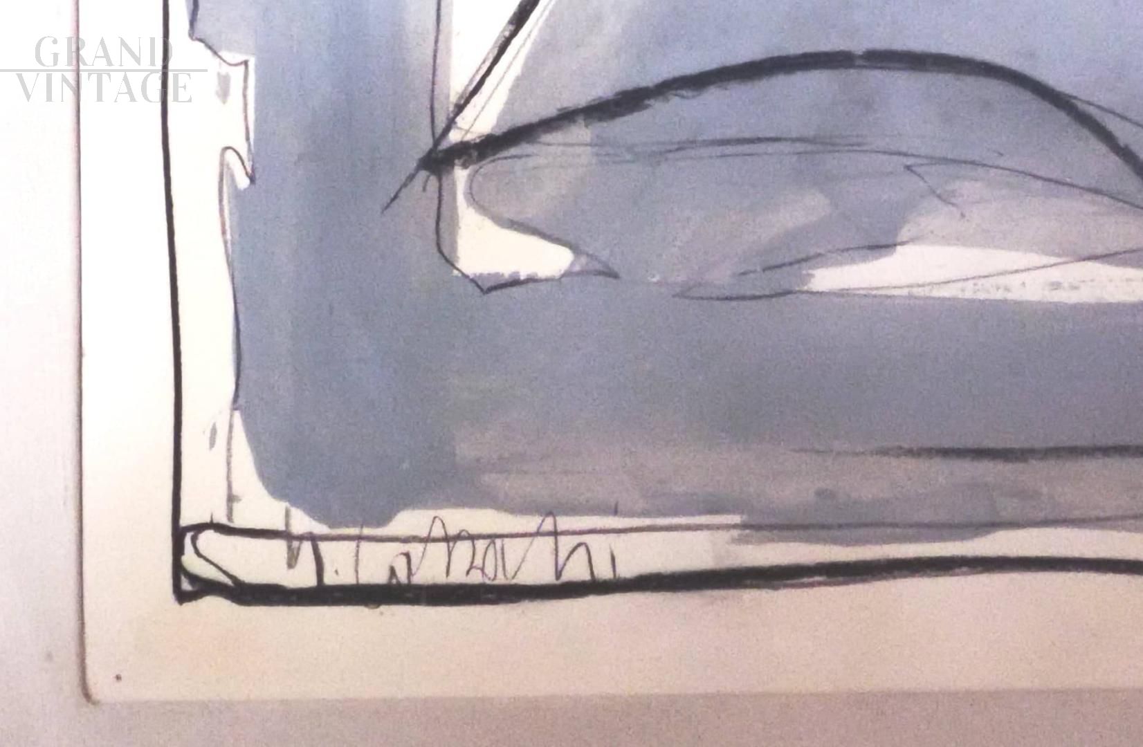 Artwork painting by Nino Cassani (Viggiù, Italy, 15 May 1930 - Milan, Italy, 11 December 2017), tempera and charcoal on paper - (preparatory studies of sculptures) 1970s, Signed.