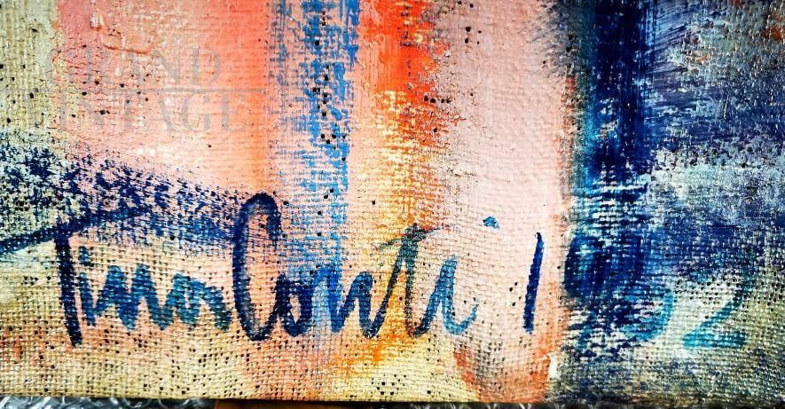 Oil painting on canvas by Tina Conti, abstract subject, dated 1962 (it could also be 1952 but we opt for 1962). Size 70 x 100 cm, without frame.