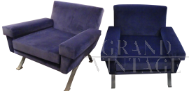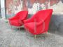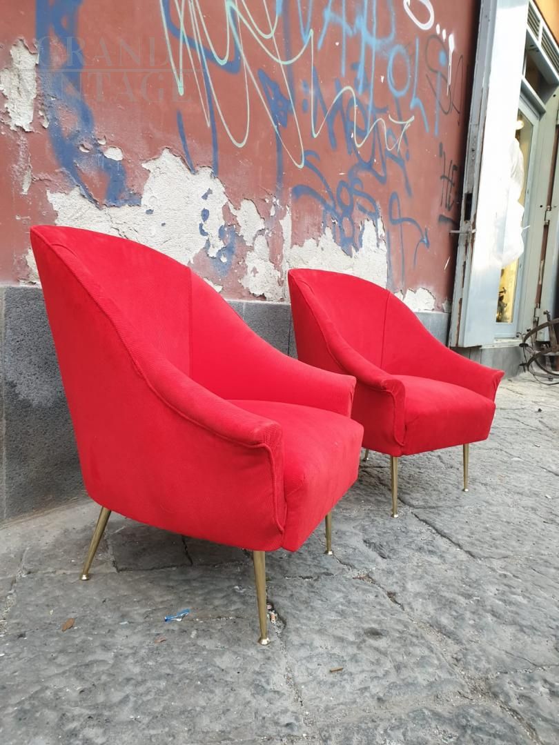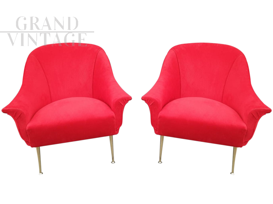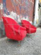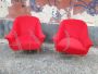 Pair of 50s / 60s armchairs in red velvet