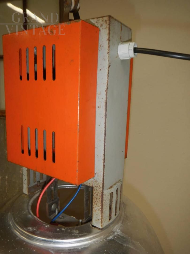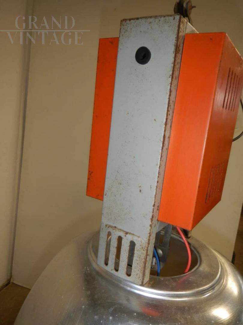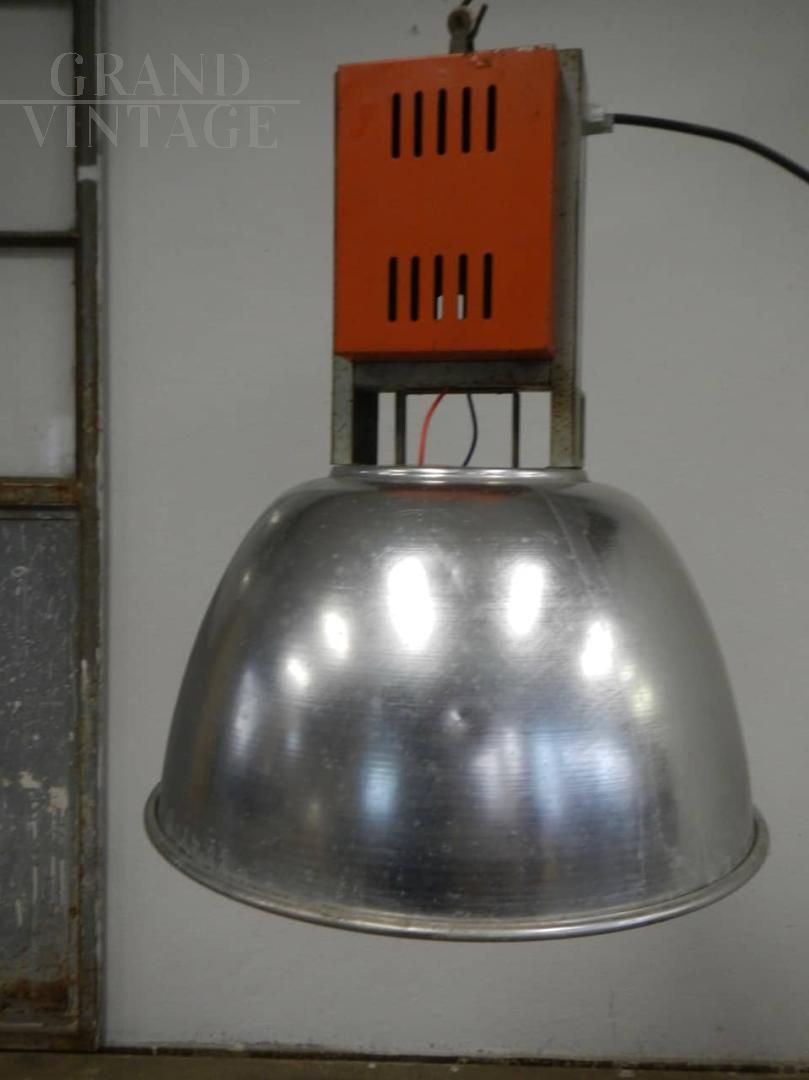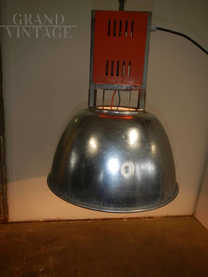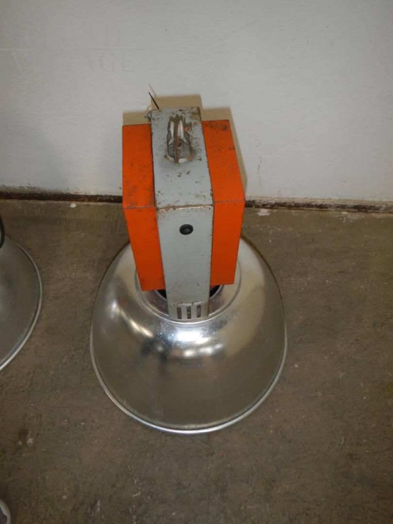 Vintage 70s industrial lamps in metal with aluminum bell and ceramic hook. Rewired and working.