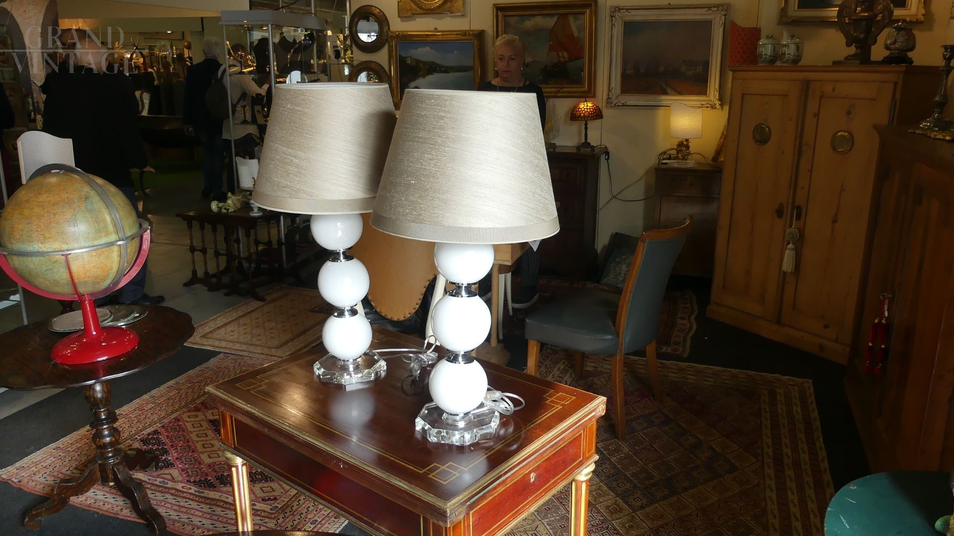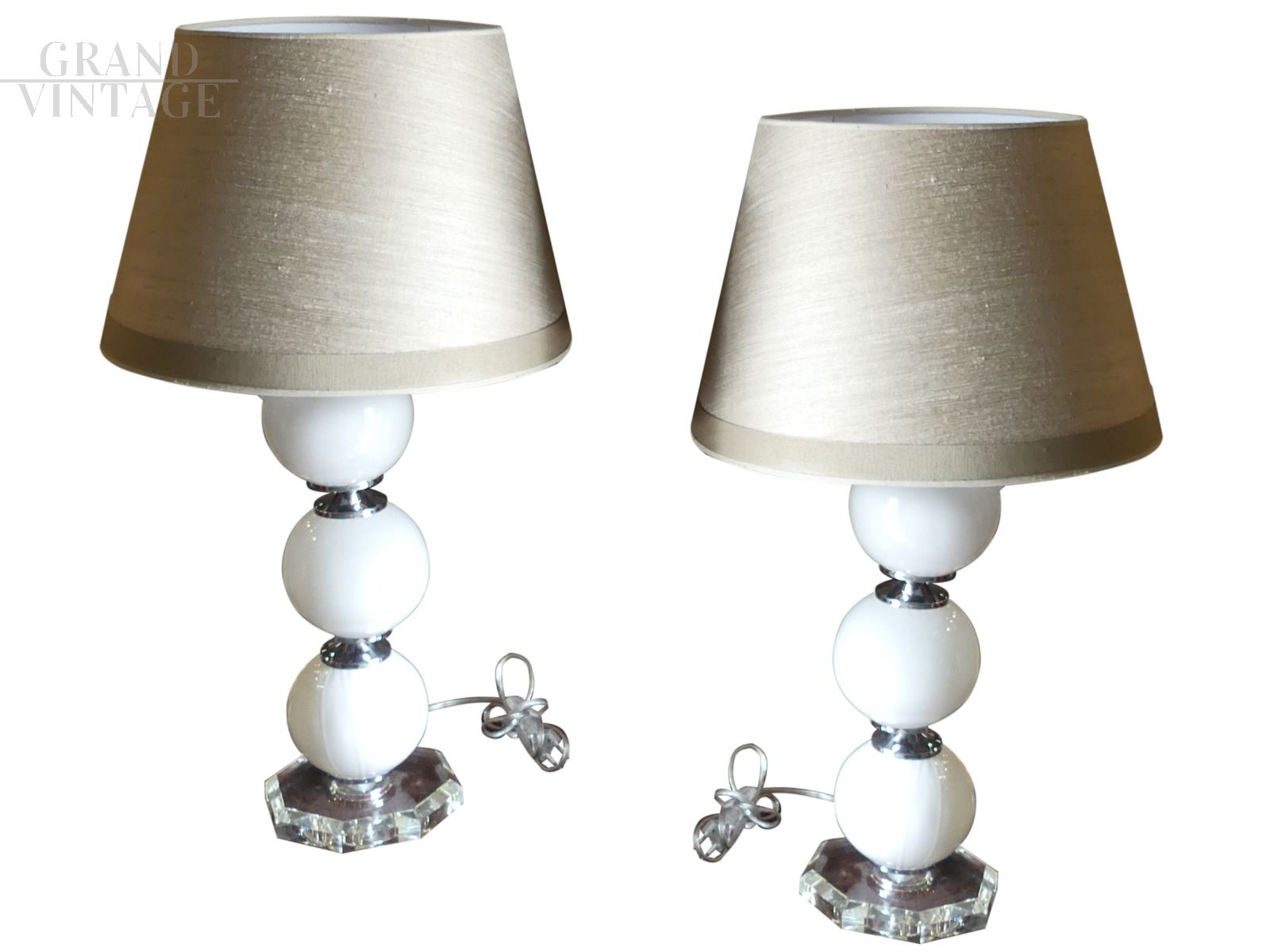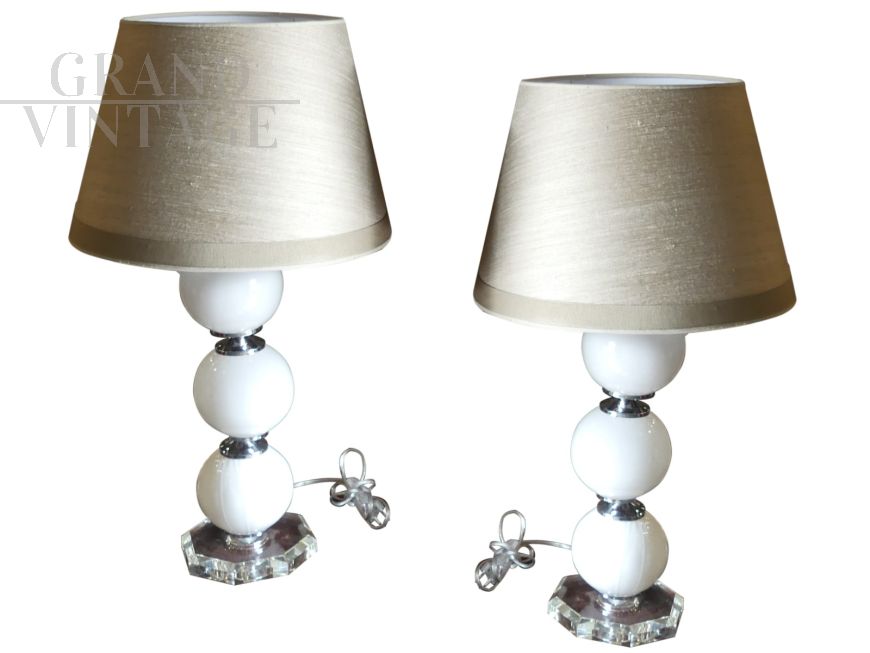 Pair of abat-jour lamps in opaline Murano glass, 1970s