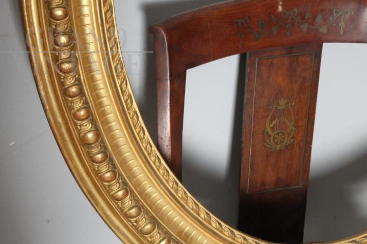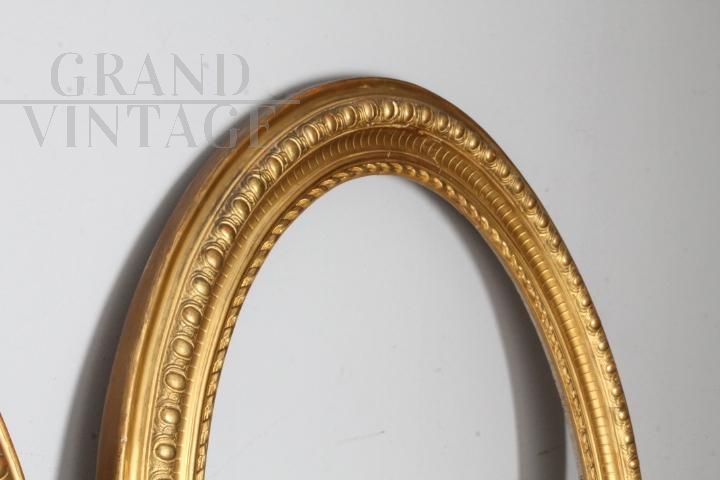 Pair of antique oval frames dating back to 1840, gilded with gold leaf and enriched by a splendid scalloped carved workmanship at various levels. In perfect condition!