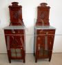 Pair of antique carved bedside tables with marble top and glass door, 1920s