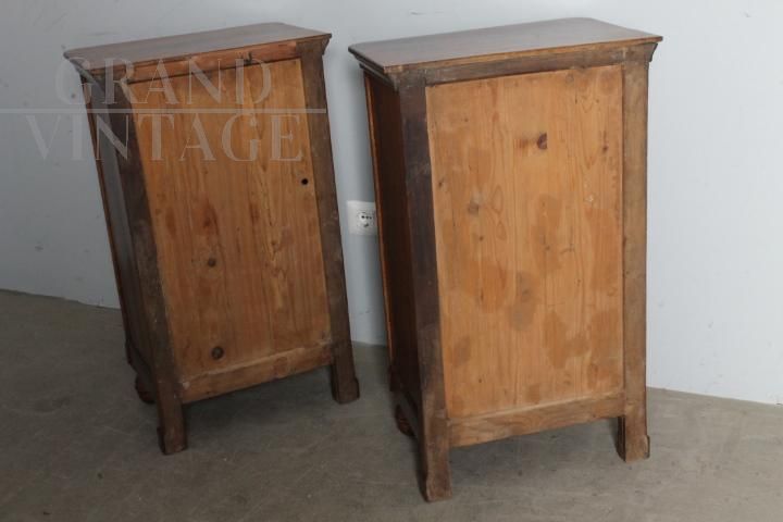 Pair of antique Charles X Italian bedside tables in solid walnut
