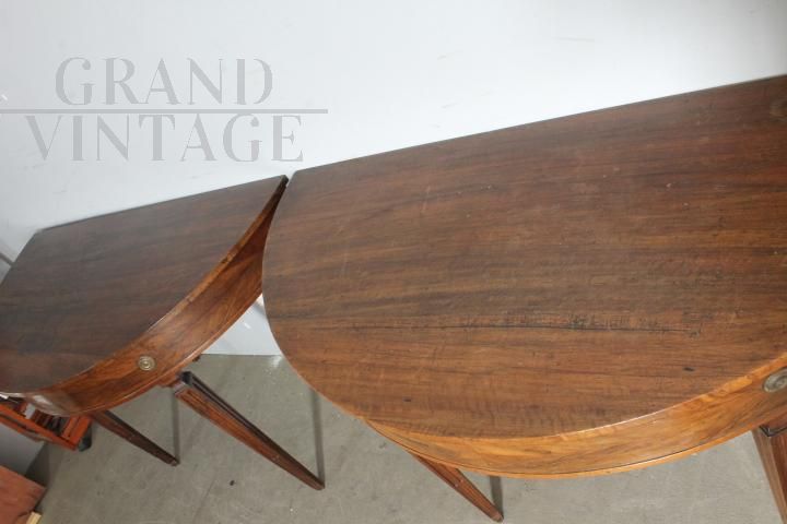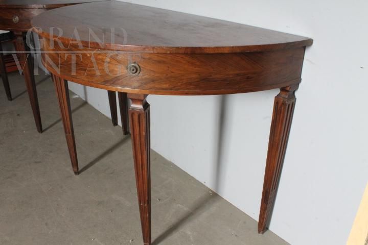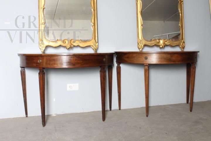 Pair of antique half-moon consoles in walnut, Italy - Parma 1770
