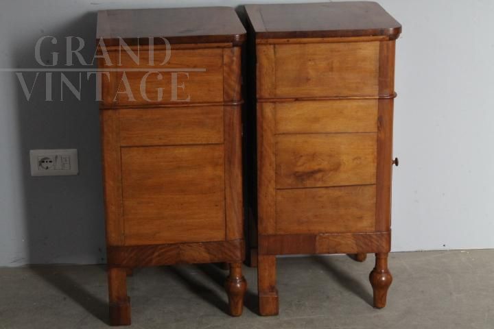 Pair of antique Louis Philippe bedside tables in blond walnut, Central Italy 1850
