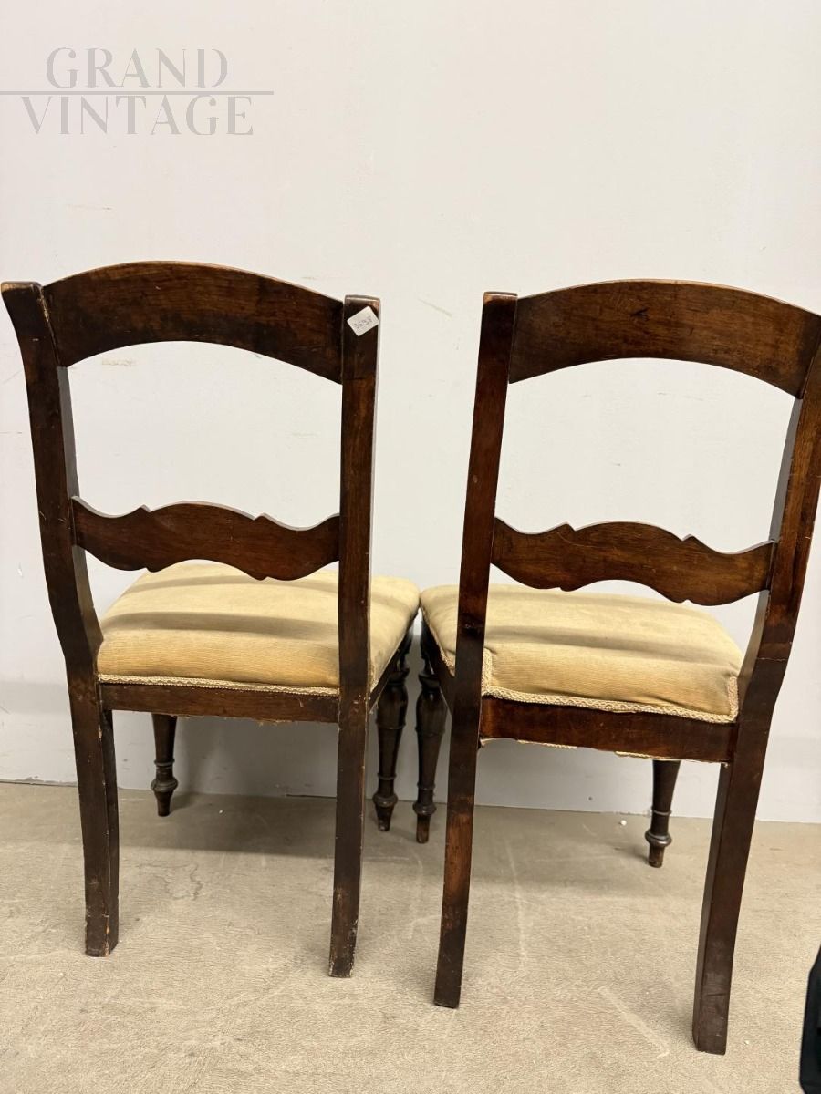 Pair of antique Louis Philippe chairs in carved solid walnut, 1850