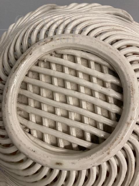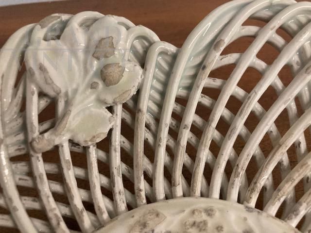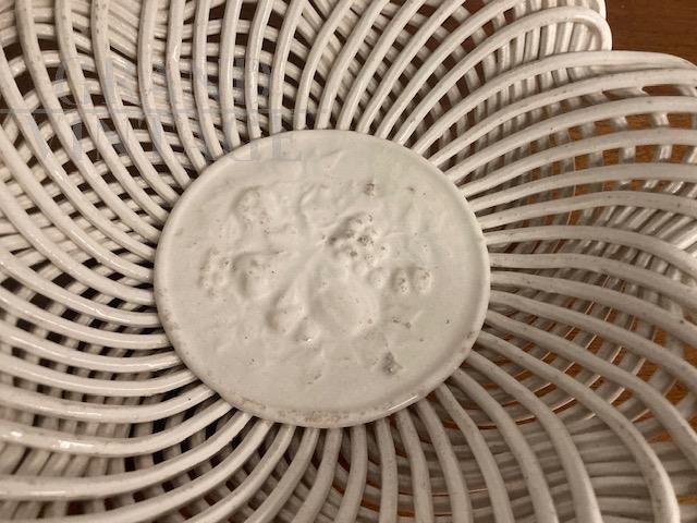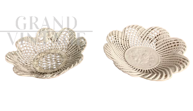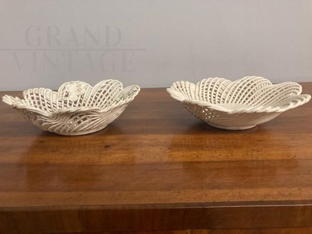 Pair of antique centerpiece plates in white glazed and perforated majolica ceramic, perfect for fruit, dating back to the 19th century, in good condition.