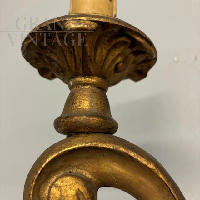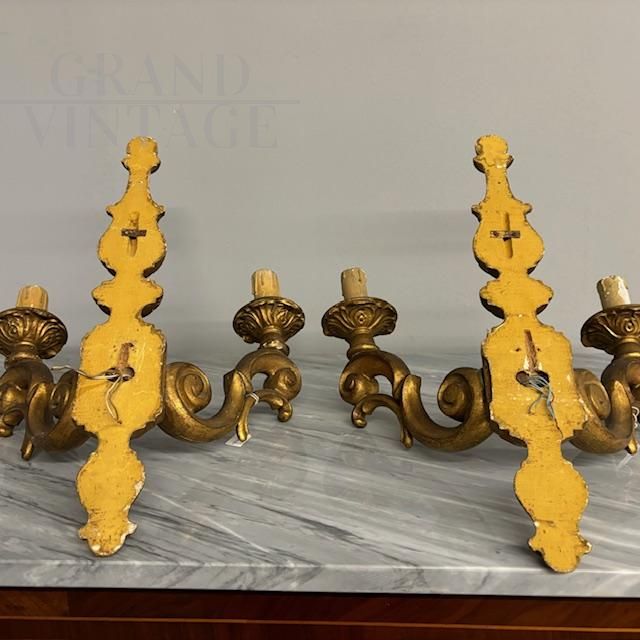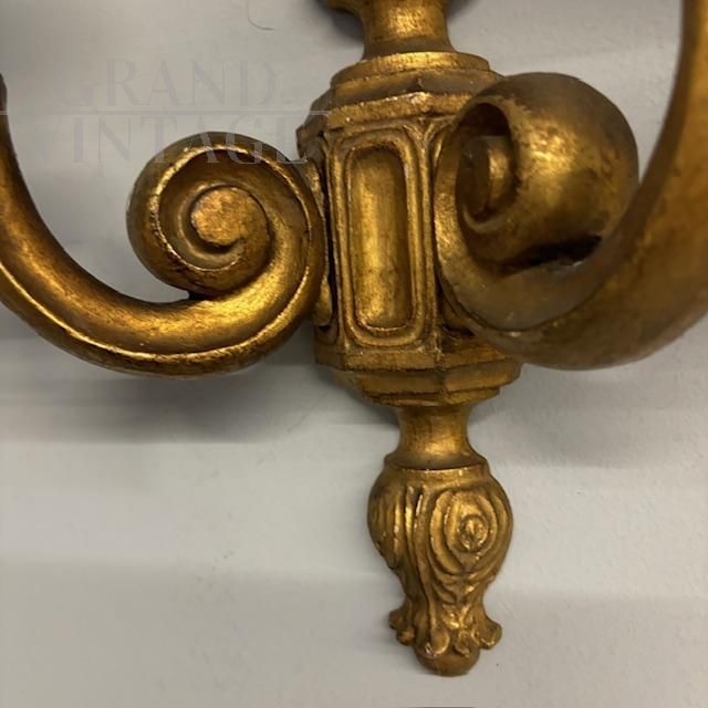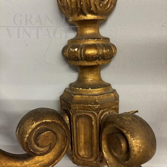 Pair of antique wall lights from the mid-19th century in carved and gilded wood