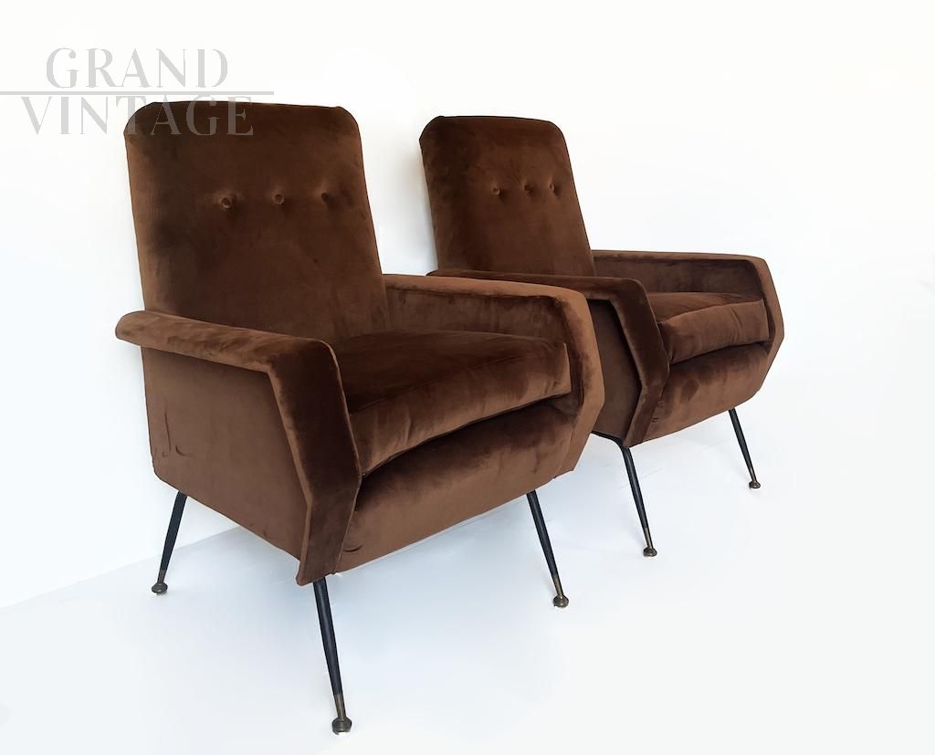 Pair of armchairs by Marco Zanuso from the 1950s in brown velvet